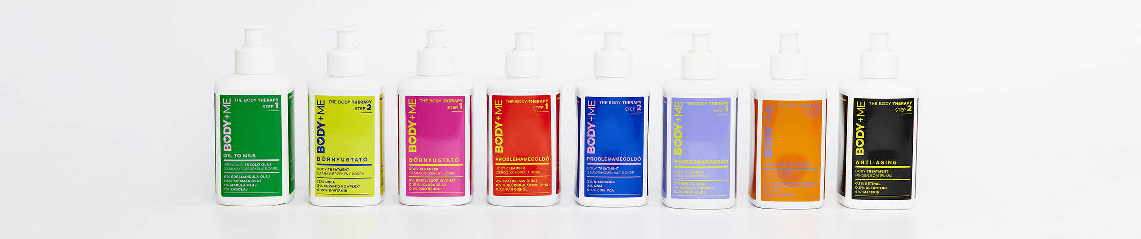 BODY+ME kétlépéses otthoni testápoló rutin, hatóanyagfókuszú formulákkal