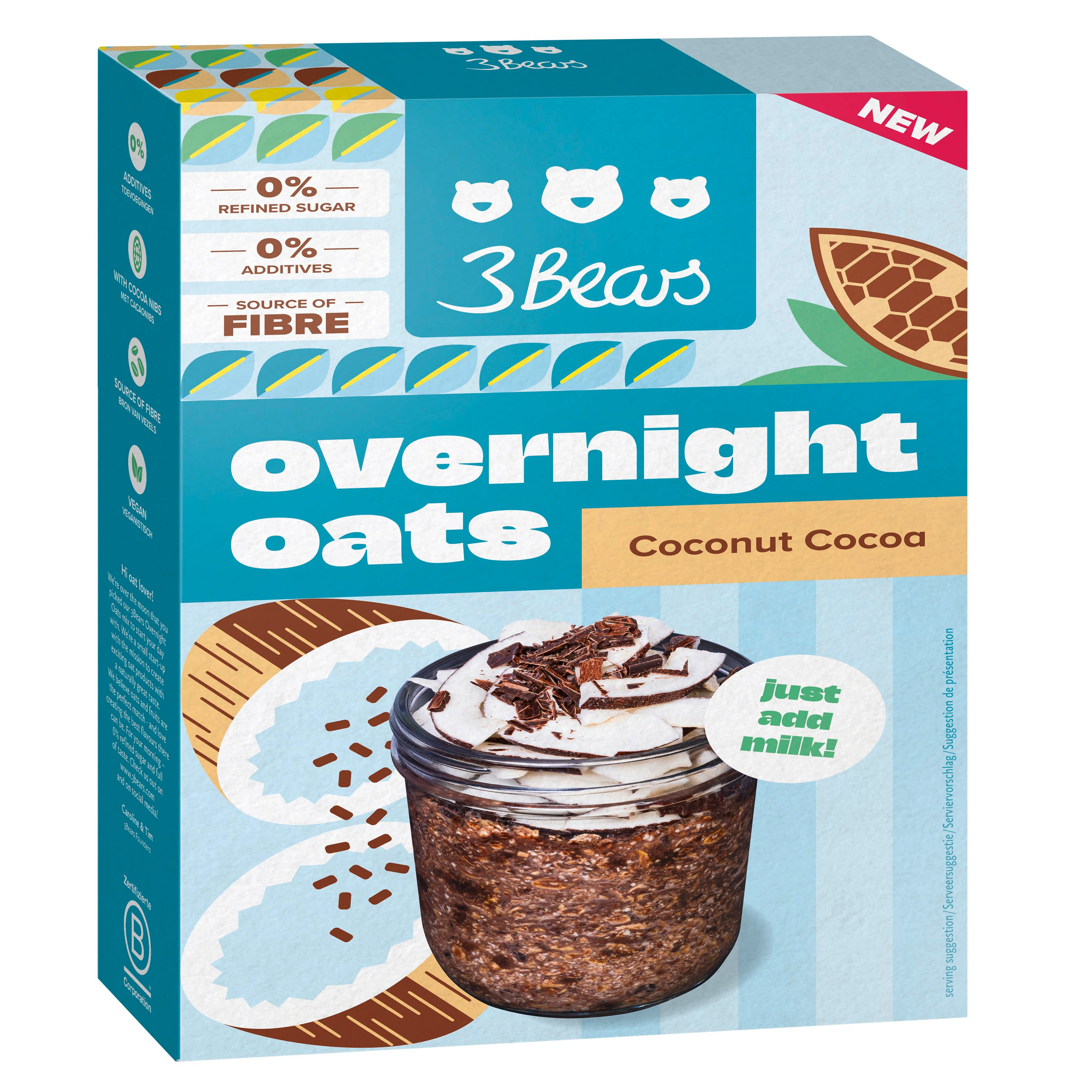 3Bears Overnight Oats zabkása kókusszal és kakóval - 400 g