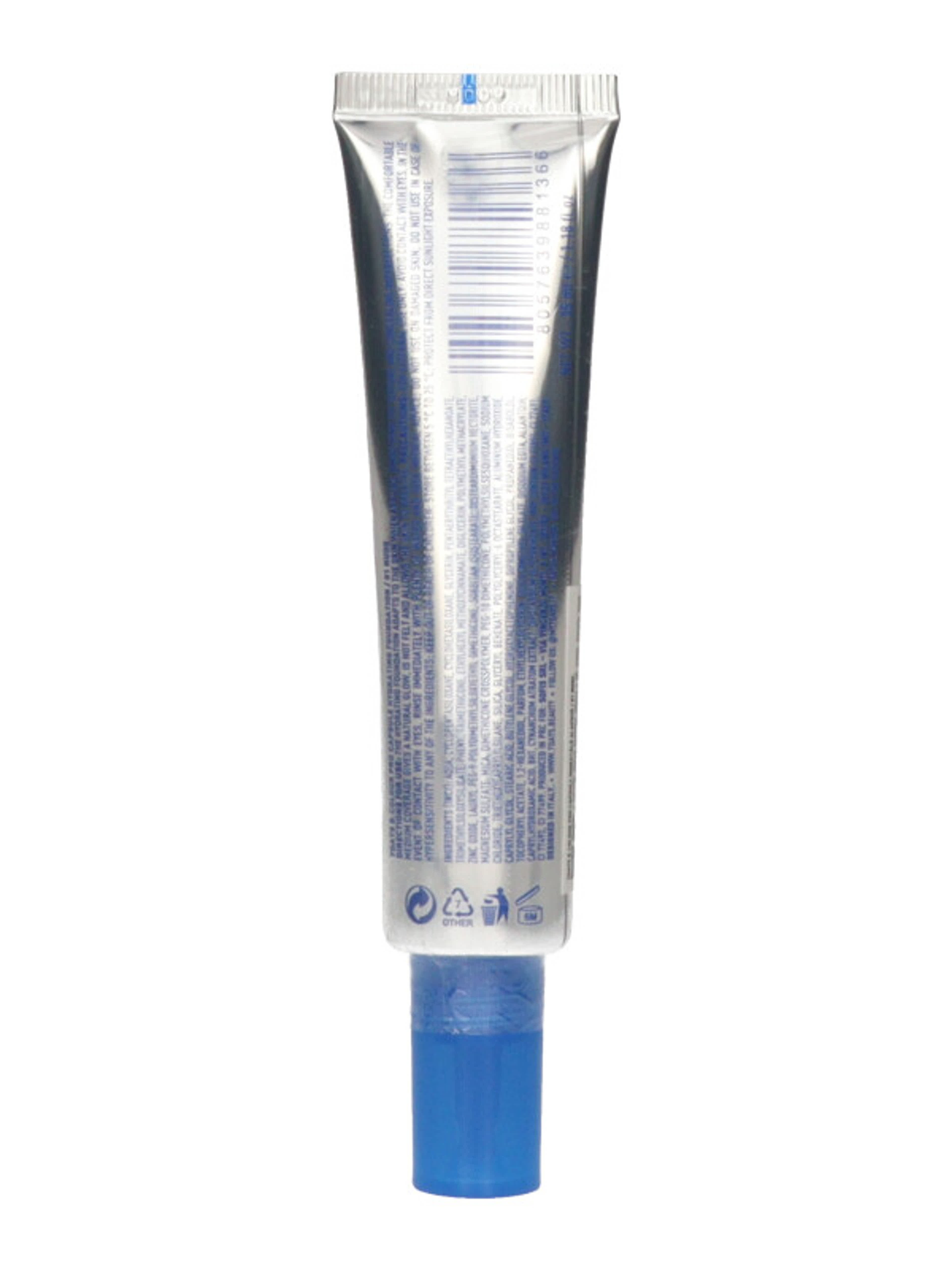 A hidratáló alapozó felvitelkor felveszi a bőr alakját, kisimítja annak textúráját és elfedi a hibákat. A kényelmes fedés természetes ragyogást ad, nem zavaró, és hagyja a bőrt lélegezni.