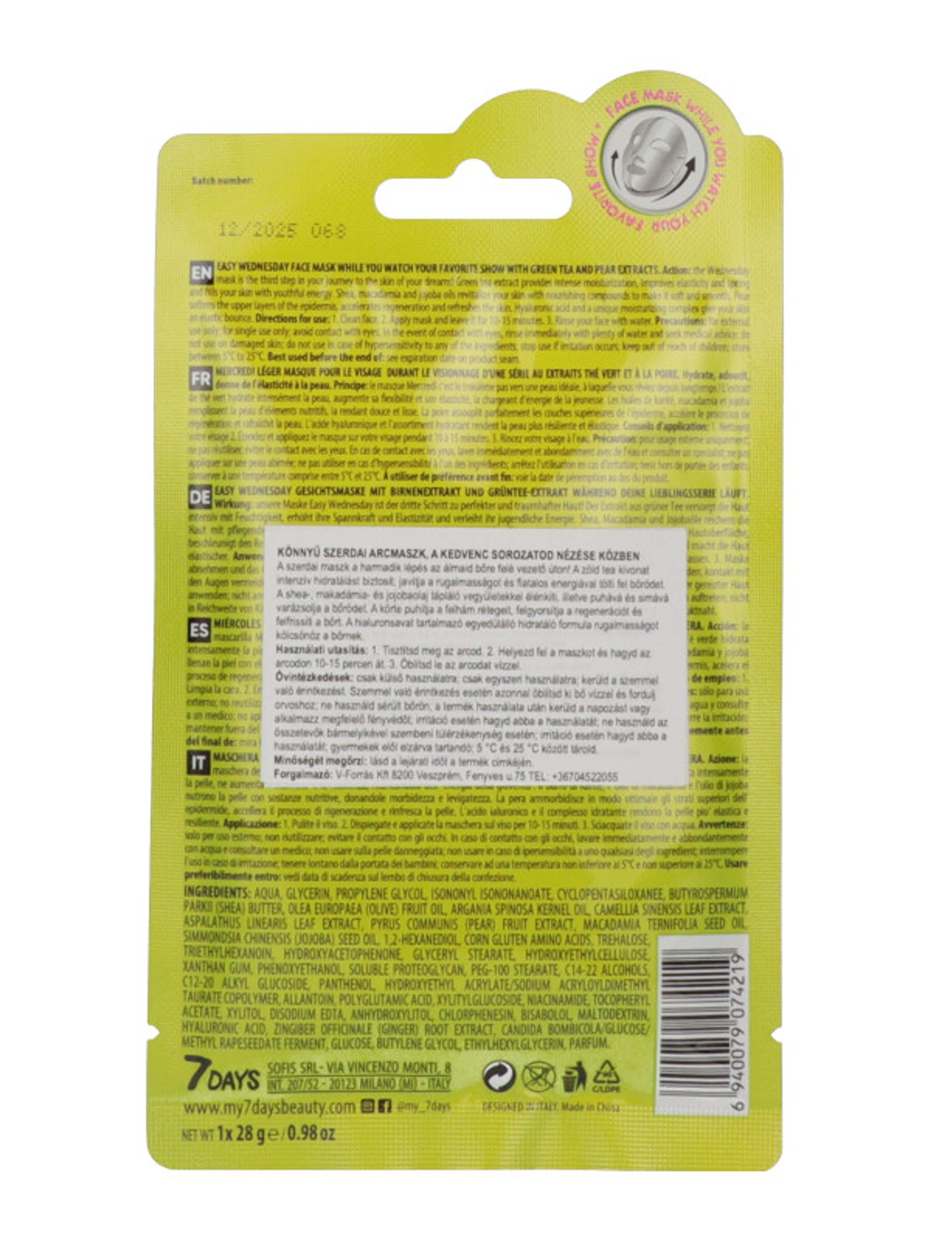 7Days Könnyű Szerda arcmaszk zöldteával és körtével - 28 g
