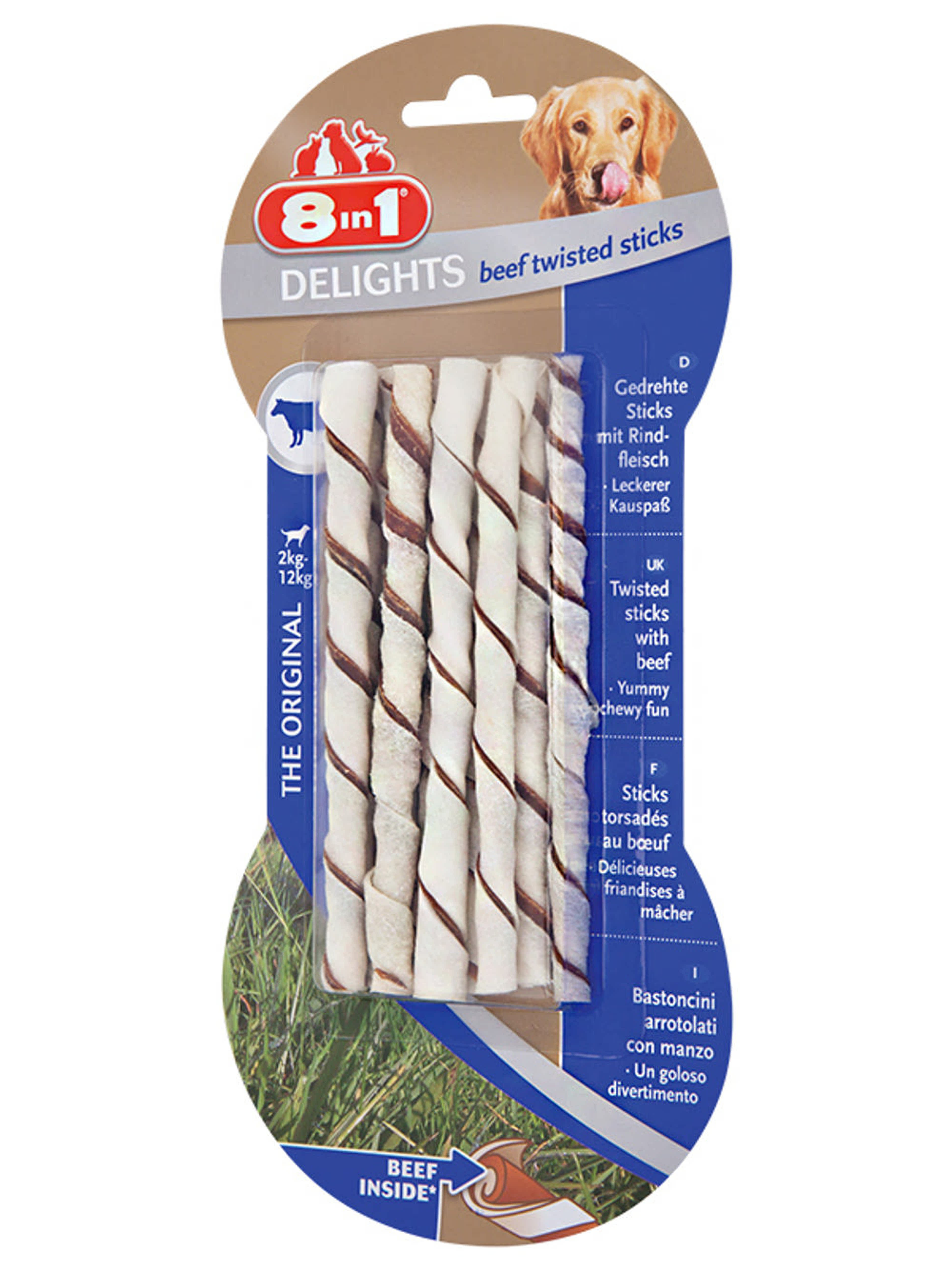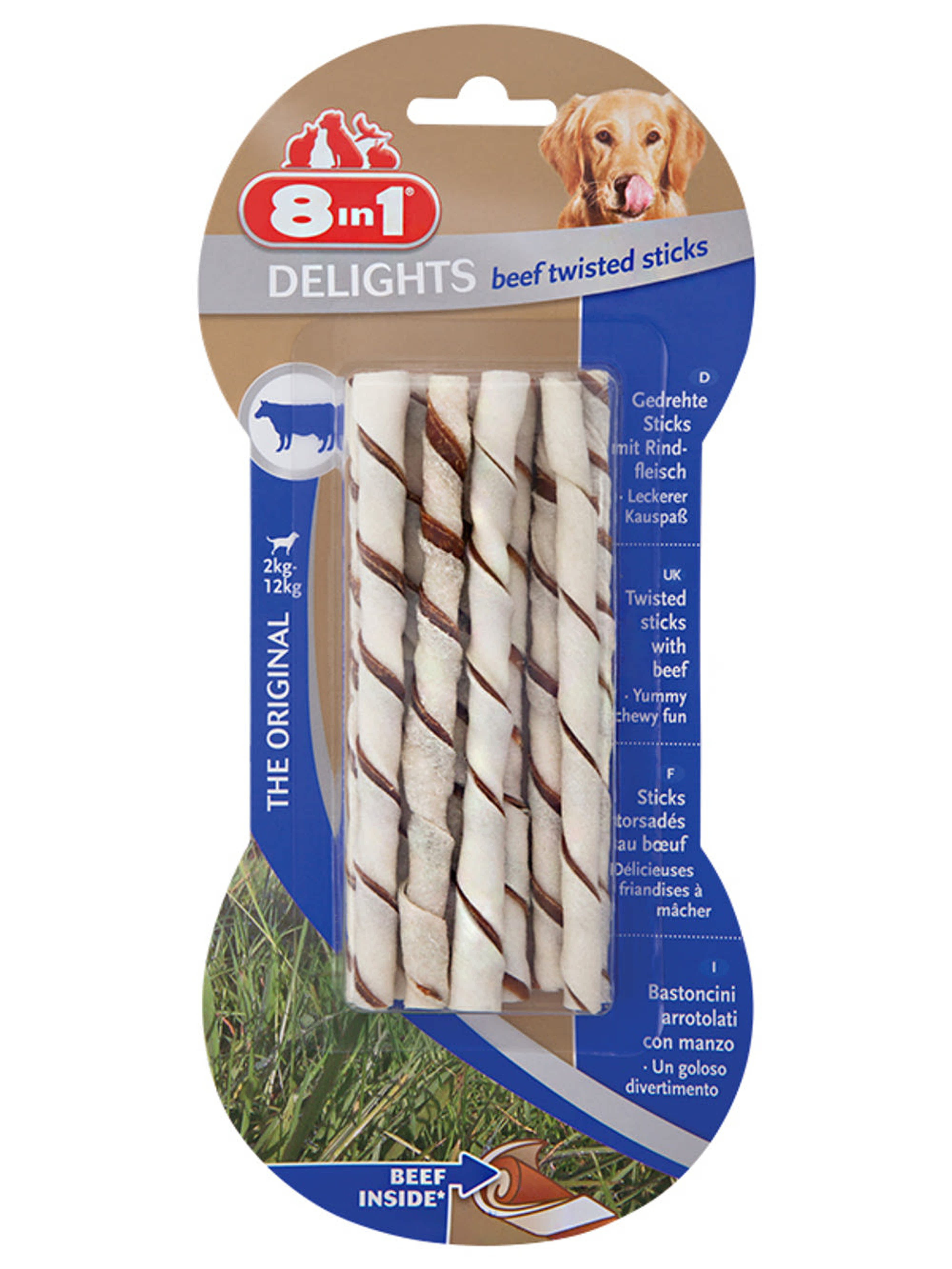 8 in 1 Delights marhahúsos csavart rudak kutyáknak, 10db - 55 g