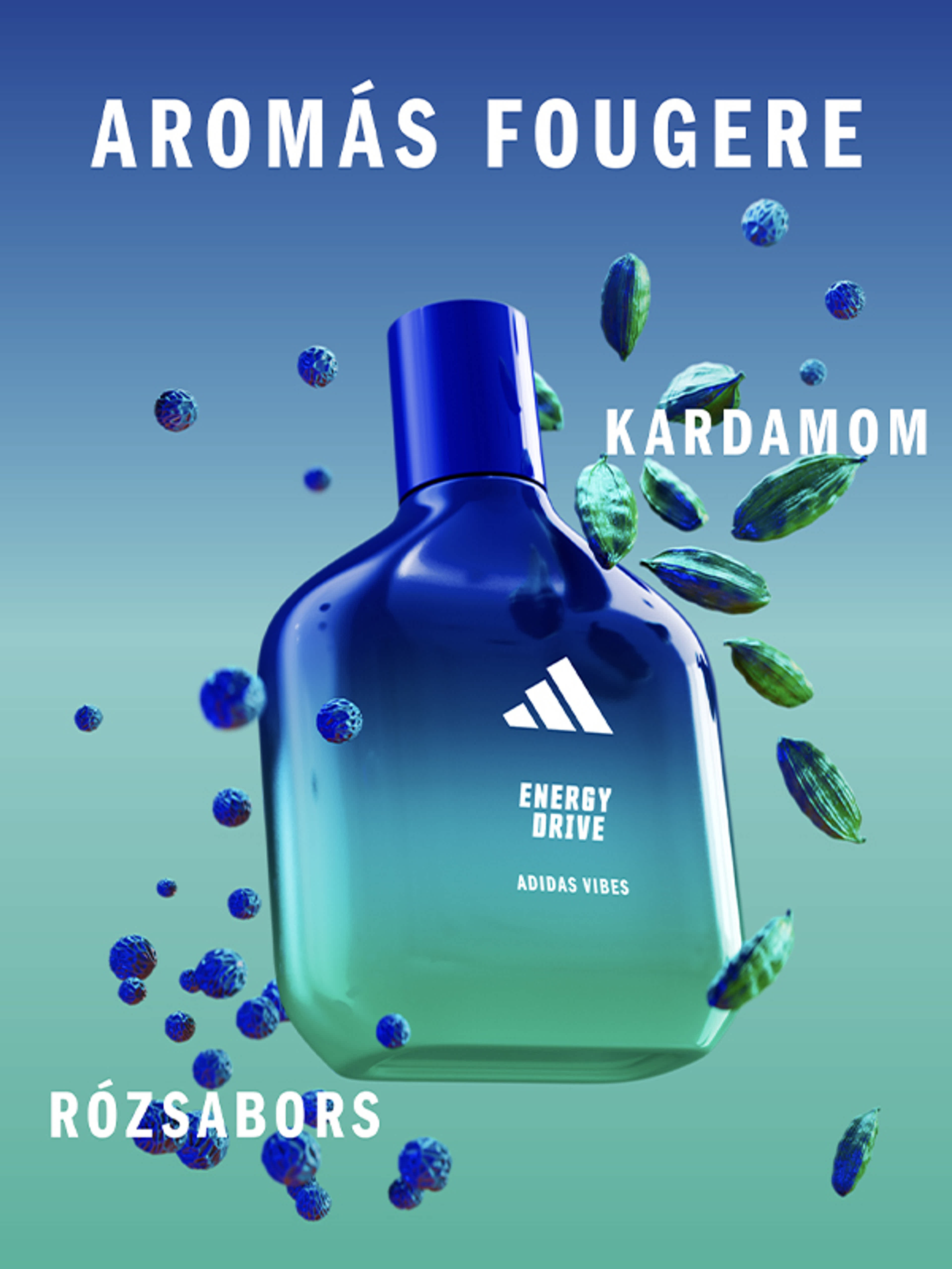 Érezd a hangulatot és érezd magad energikusnak az új adidas illatokkal. A Vibes Energy Drive Eau de Parfum bizonyítottan pozitív érzést kelt*. A kardamom és a rózsabors erőt adó és ragyogó jegyeivel megállíthatatlan energialöketet ad, mintha semmi sem állhatna az utadba. *81%-os egyetértés egy 106 résztvevővel végzett fogyasztói teszt során.