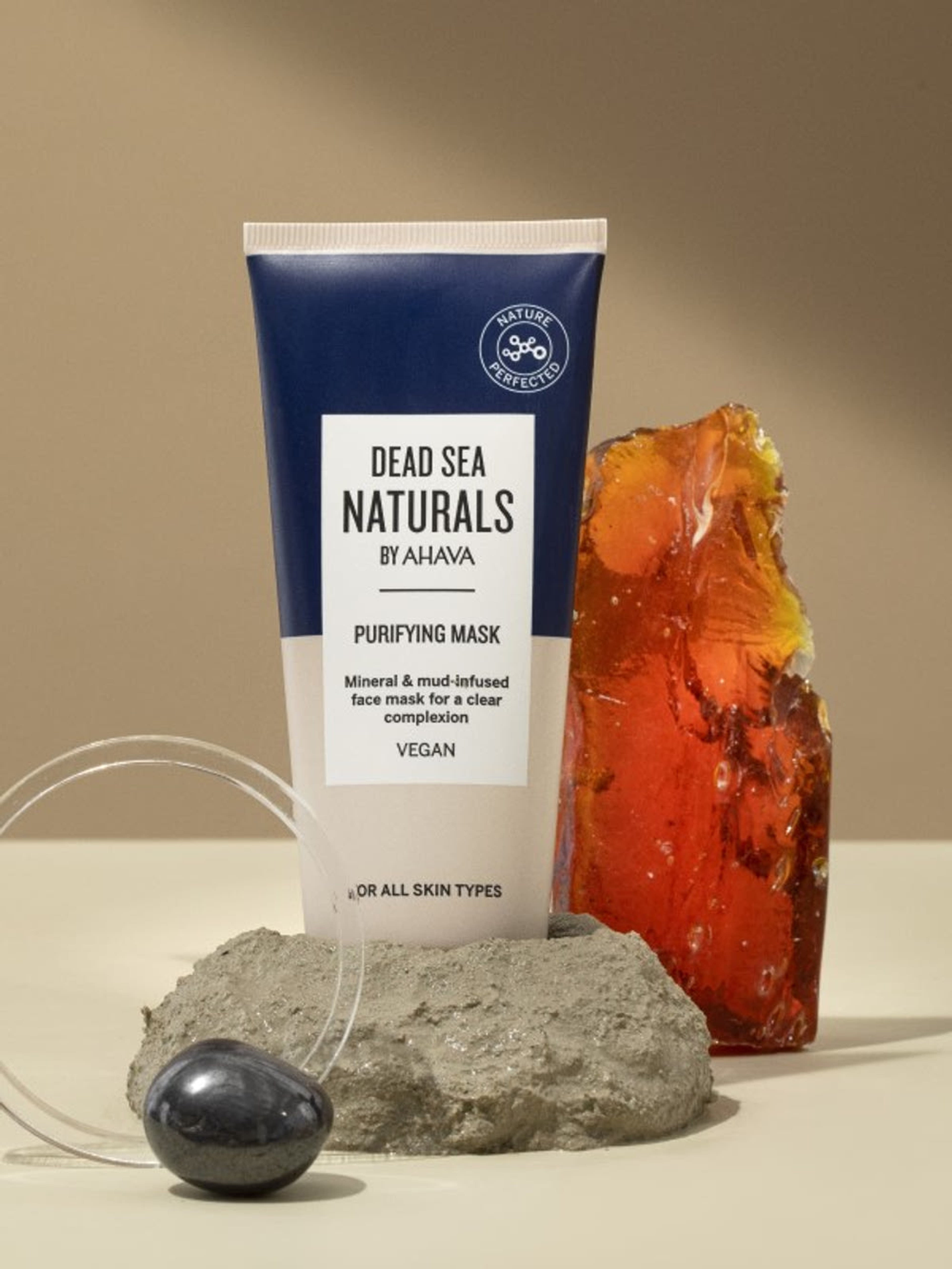 Aqua (Mineral Spring Water), Kaolin, Silt (Dead Sea Mud), Propanediol (Corn Derived), Glyceryl Stearate, Ethylhexyl Palmitate, Sodium Trideceth Sulfate, Glycerin, Simmondsia Chinensis (Jojoba) Seed Oil, Zinc Oxide, Sodium Lauroamphoacetate, Cetearyl Alcohol, Phenoxyethanol, Propylene Glycol, Sodium Lactate, Stearyl Alcohol, Cocamide MEA, Ceteareth-30, PEG-40 Stearate, Magnesium Aluminum Silicate, Hydroxyethylcellulose, Lactic Acid, Caprylyl Glycol, Chlorphenesin, Dimethicone, Sorbitan Tristearate, Xanthan Gum, Sodium Chloride, Sodium Benzoate, Ascorbyl Palmitate, Glycine Soja (Soybean) Oil, Lecithin, Hydrogenated Vegetable Glycerides Citrate, Beta-Sitosterol, Squalene (Phytosqualene), Potassium Sorbate, Citric Acid, Helianthus Annuus (Sunflower) Seed Oil, Tocopherol (Vitamin E), Chamomilla Recutita (Matricaria) Flower Extract, Allantoin, Aloe Barbadensis Leaf Extract, Panthenol (Pro Vitamin B5), Maris Sal (Dead Sea Salt), Dunaliella Salina (Dead Sea Alga) Extract, Phoenix Dactylifera (Date) Fruit Extract, Maris Aqua (Dead Sea Water).