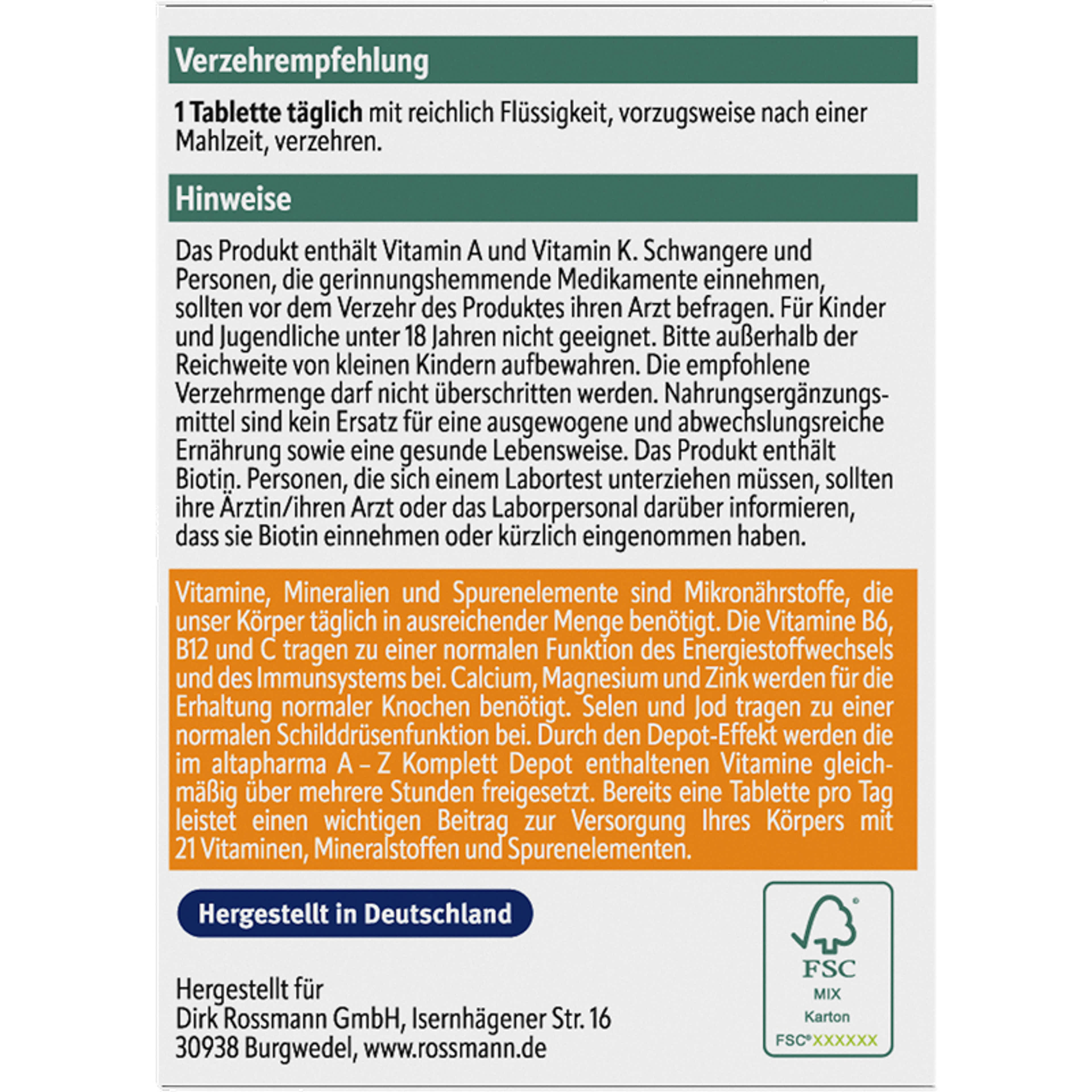 Altapharma A-Z Multivitamin Tabletta - 100 db