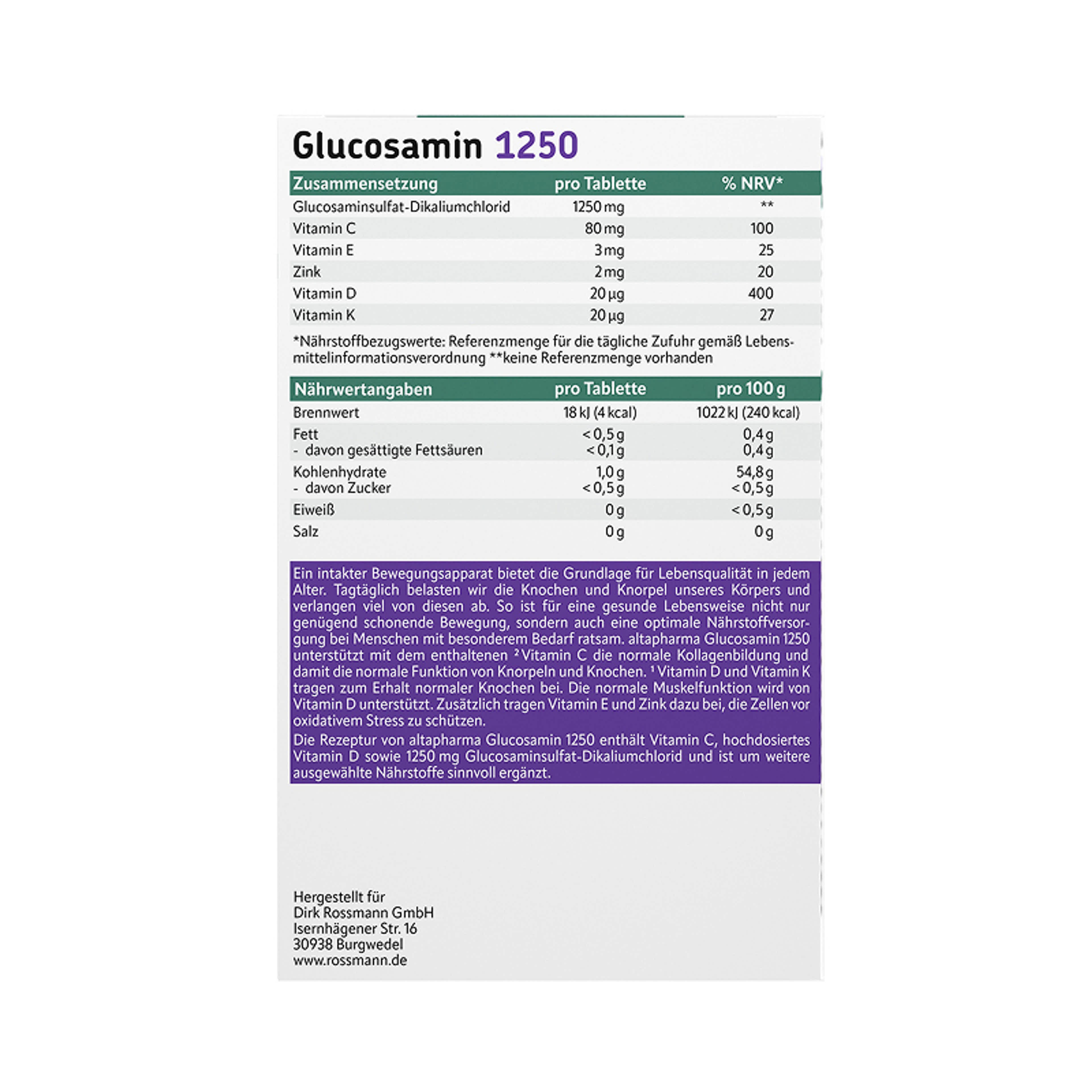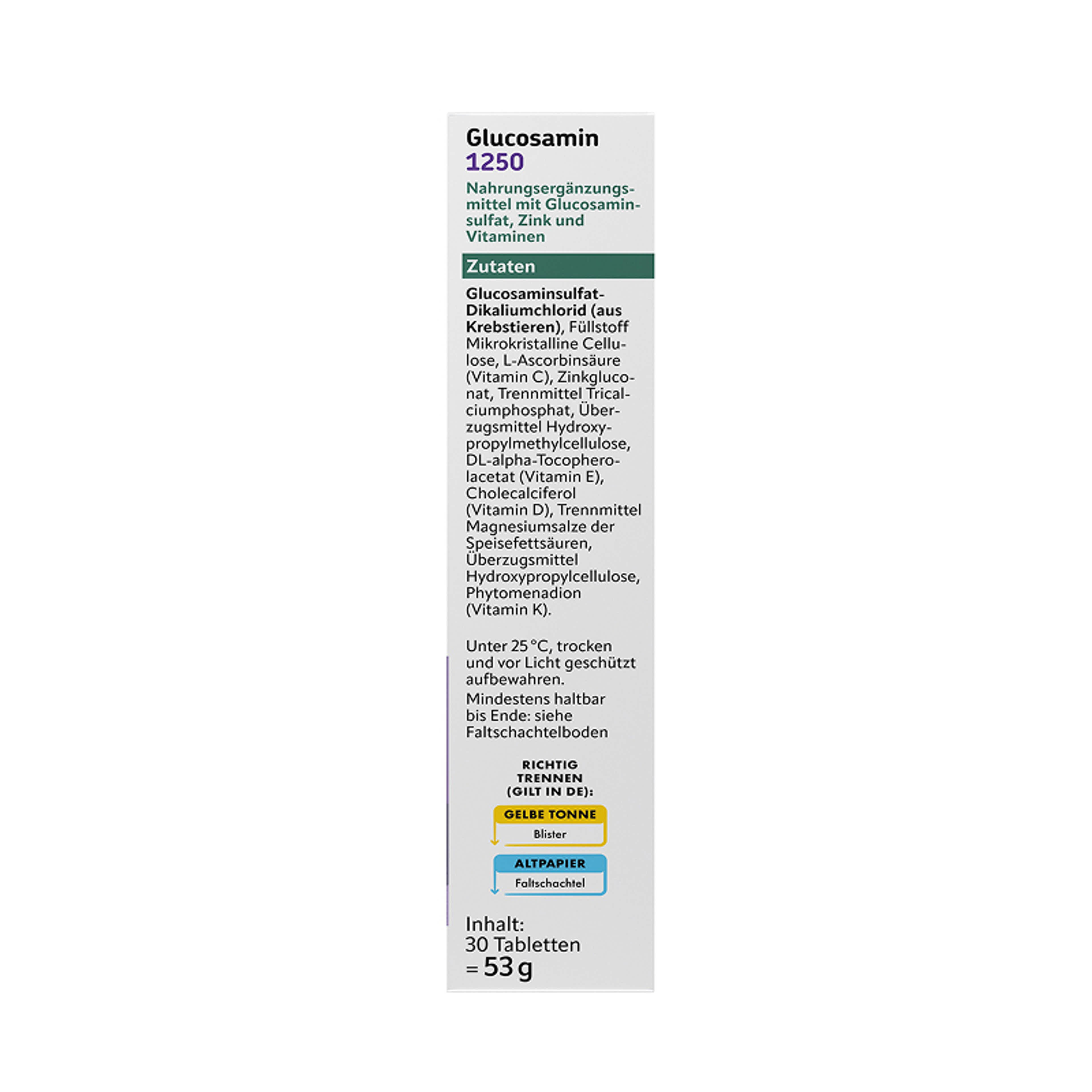 Altapharma étrend-kiegészítő tabletta glükózamin-szulfáttal, cinkkel és vitaminokkal - 30 db