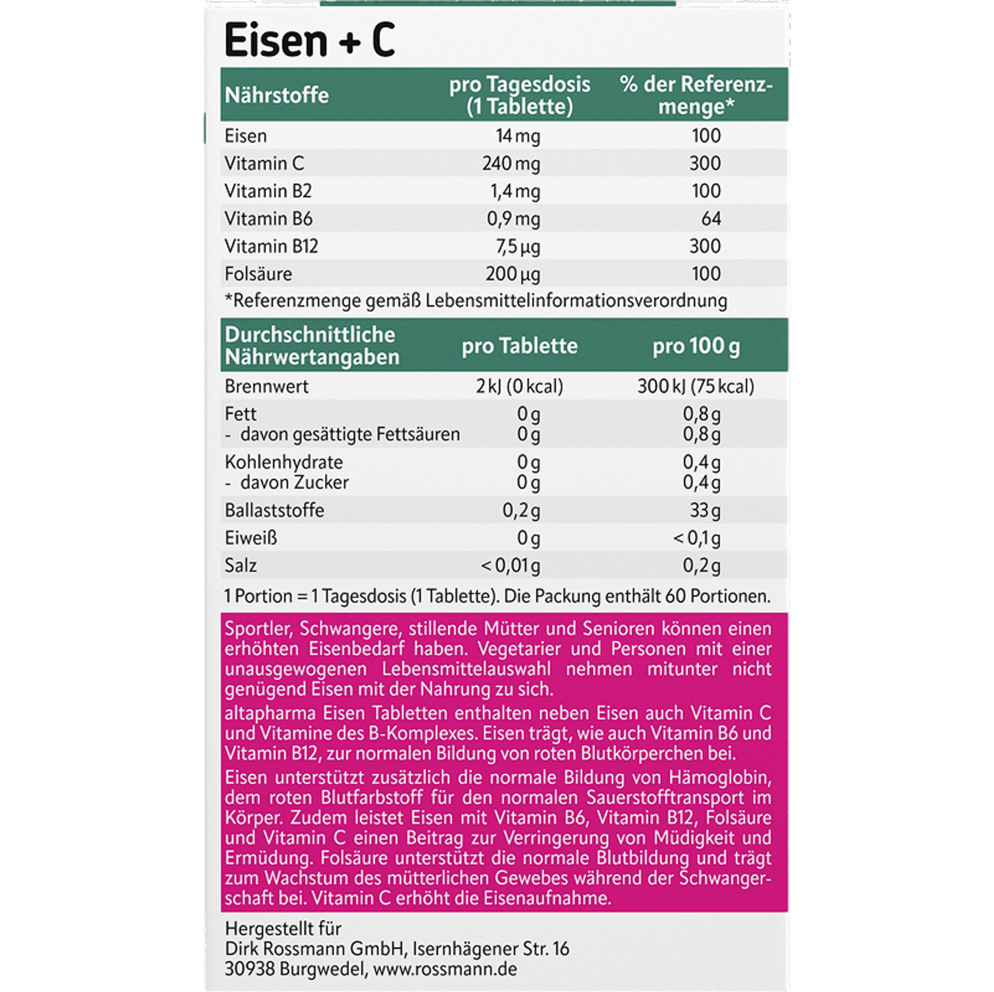 Altapharma Vas + Vitamin tabletta - 60 db