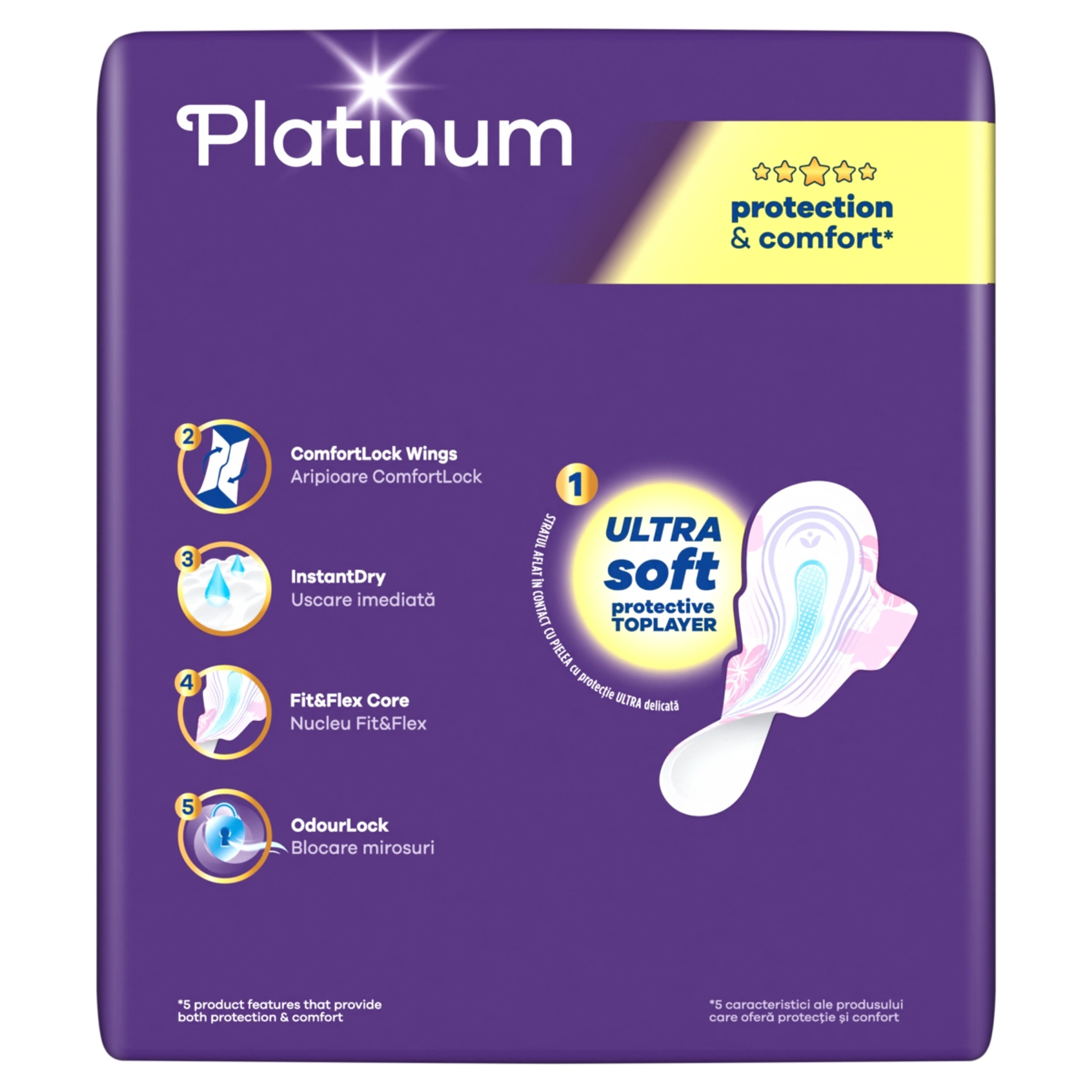 Always Platinum 5x-ös védelemmel, most még puhább*. *5 termékjellemző gondoskodik a védelemről, és a korábbi Always Platinum betéthez képest puhább