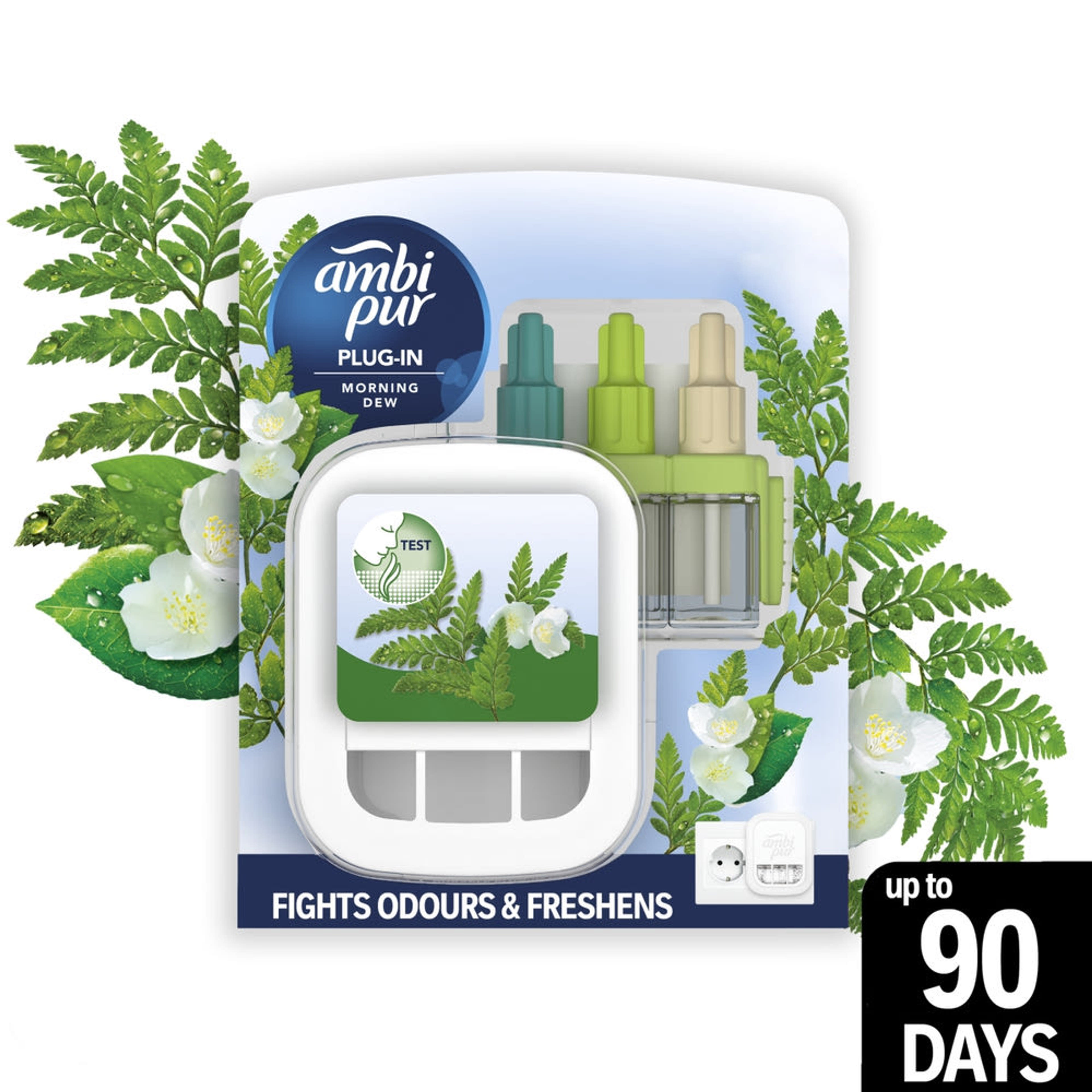 Folyamatosan távolítja el a kellemetlen szagokat, és a 3 egymást kiegészítő illatot váltogatva teremt észrevehető frissességet Akár 90 napon át tart (alacsony fokozaton, napi 12 órás használat esetén) Morning Dew kettős hatással: messzebbről érezhető, intenzív illat A természetes tavaszi frissessége ihlette A 3Volution Odourclear technológiája révén folyamatosan távolítja el a kellemetlen szagokat, miközben könnyed, friss illatot hagy maga után A 3Volution 45 percenként váltogatja az egymást kiegészítő illatokat, így a frissesség mindig érezhető