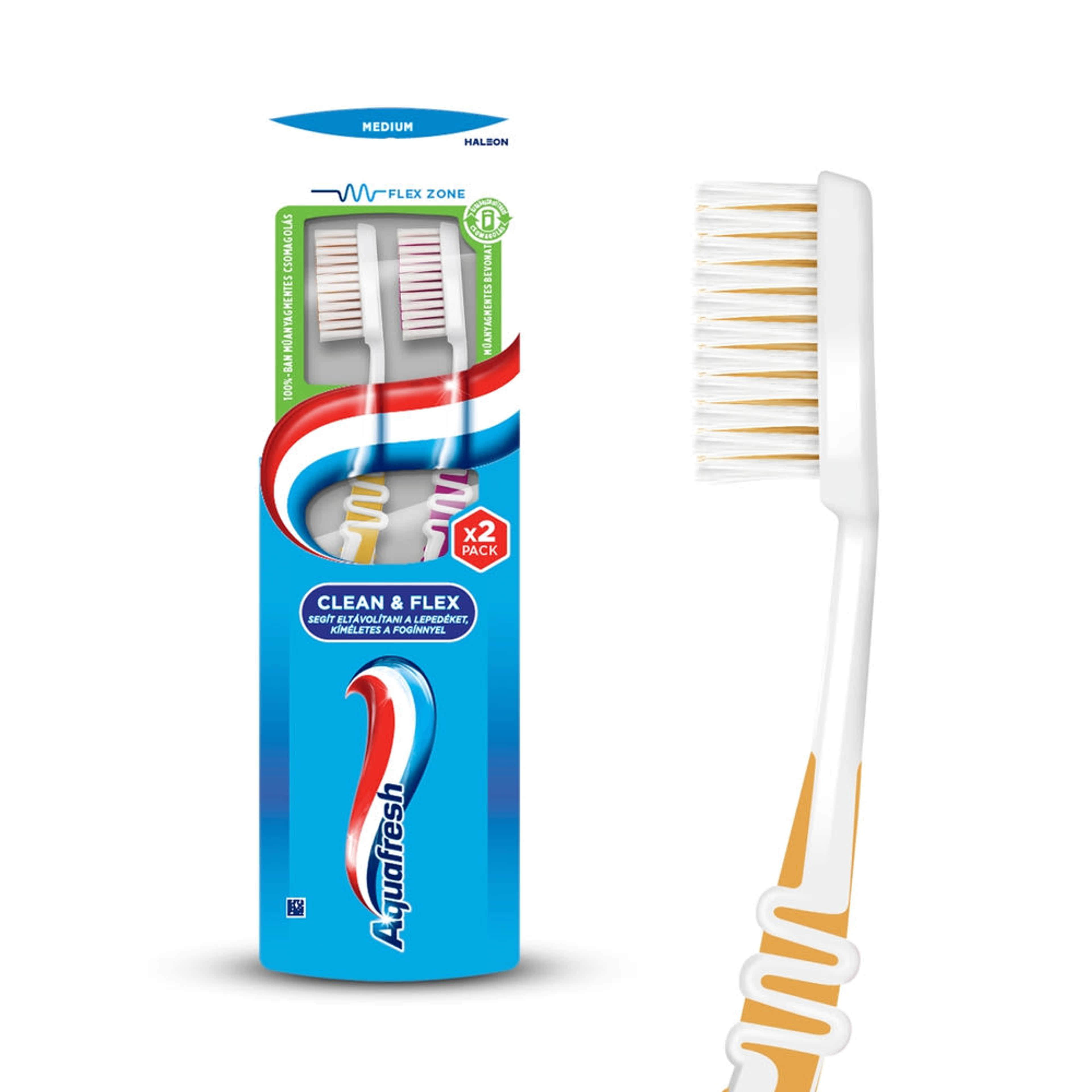 Aquafresh Clean & Flex duopack fogkefe közepesen erős sörtékkel - 2 db