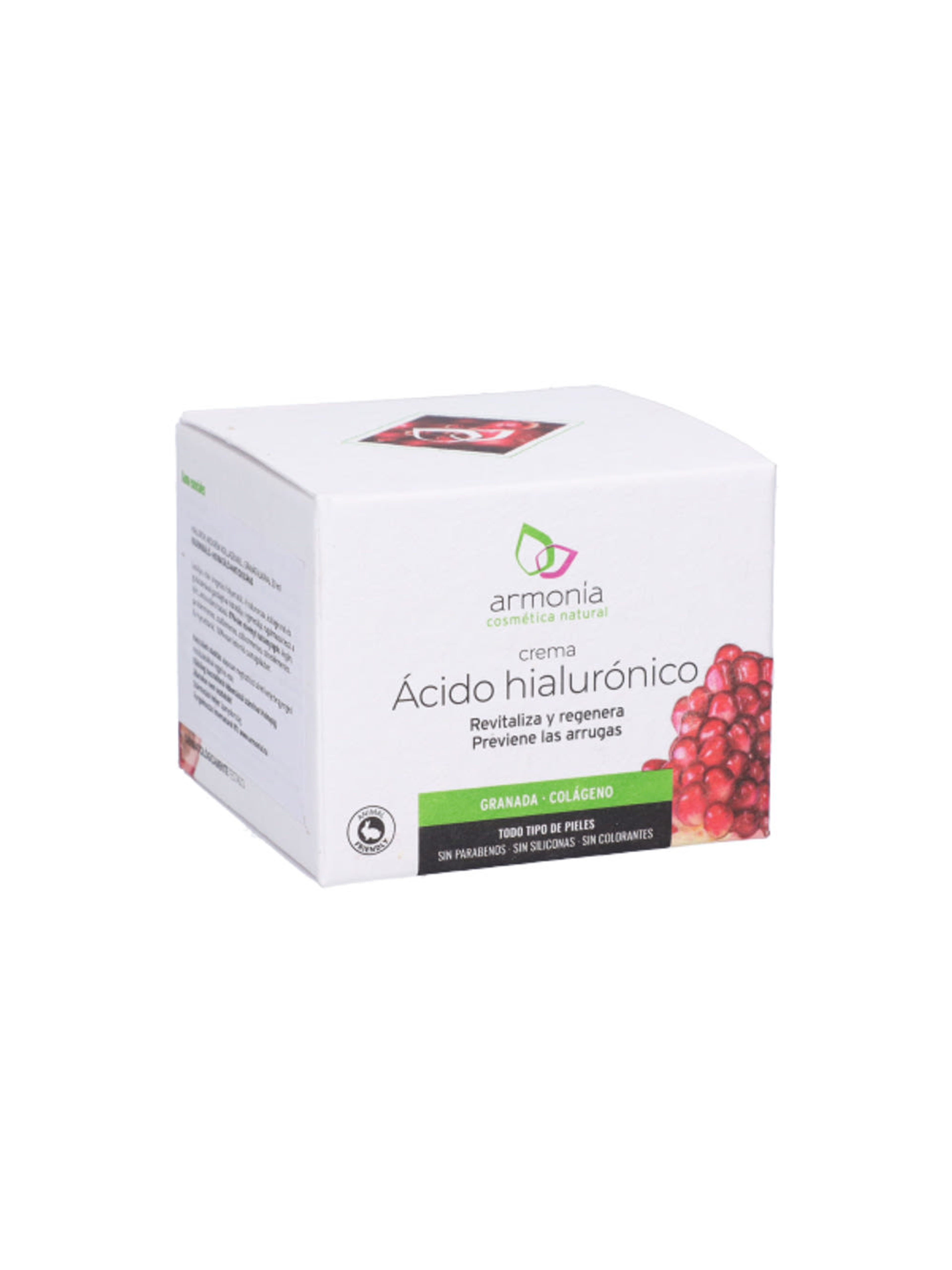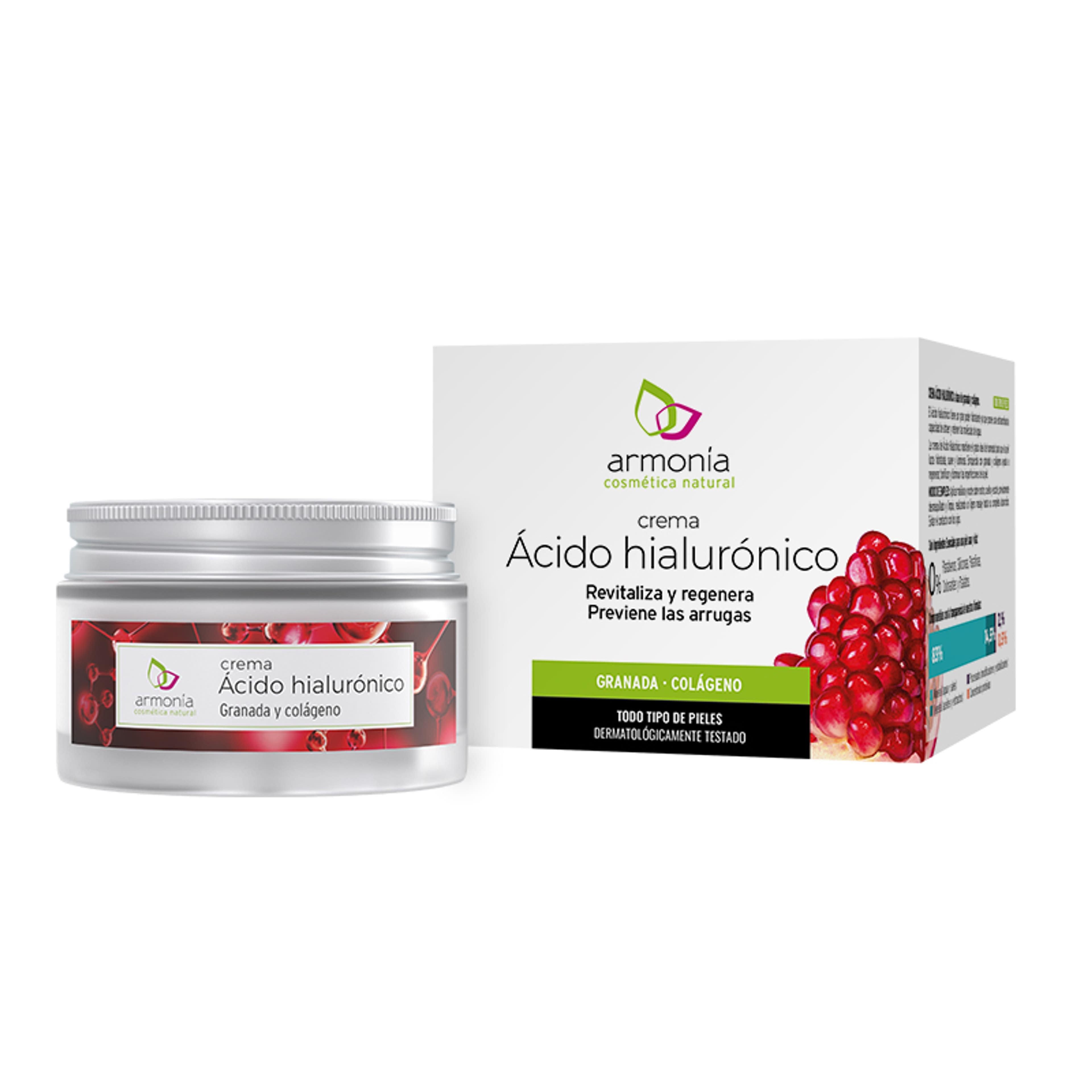 Revitalizáló hidratáló,regenereráló, arckrém, mely lassítja a bőr öregedési folyamatát, rugalmassá teszi a bőrt, Antioxidáns hatású. A hialuronsav magas hidratáló hatással rendelkezik, redndkívül jó vízmegtartó hatásával fenntartja a bőr optimális nedvességtartalmát, így hidratált, puha bőrt eredményez. Gránátalmával és kollagénnel dúsítva elősegíti a bőr regenerálódását, tónusának javítását és a bőrhibák csökkentését. 97%-ban növényi hatóanyagok. Vegán, parabénmentes, szulfátmentes, szilikonmentes, színezékmentes, állatkísérlet mentes. Környezetbarát, 100%-osan lebomló csomagolásban.