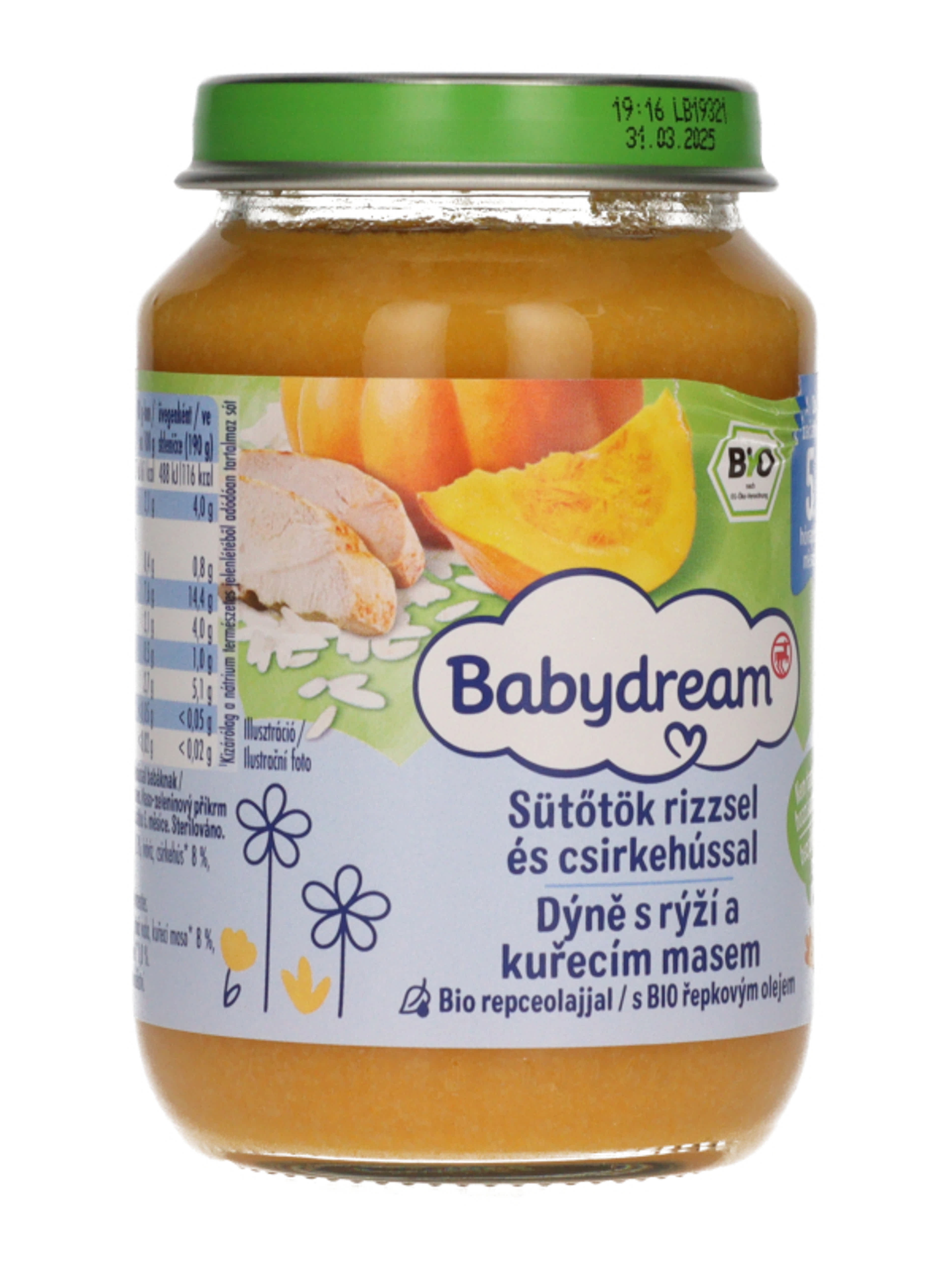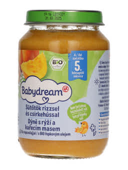 Babydream Bébiétel Sütőtök, Rizs, Csirkehús Ízesítéssel 4H/5 Hónapos kortól - 190 g