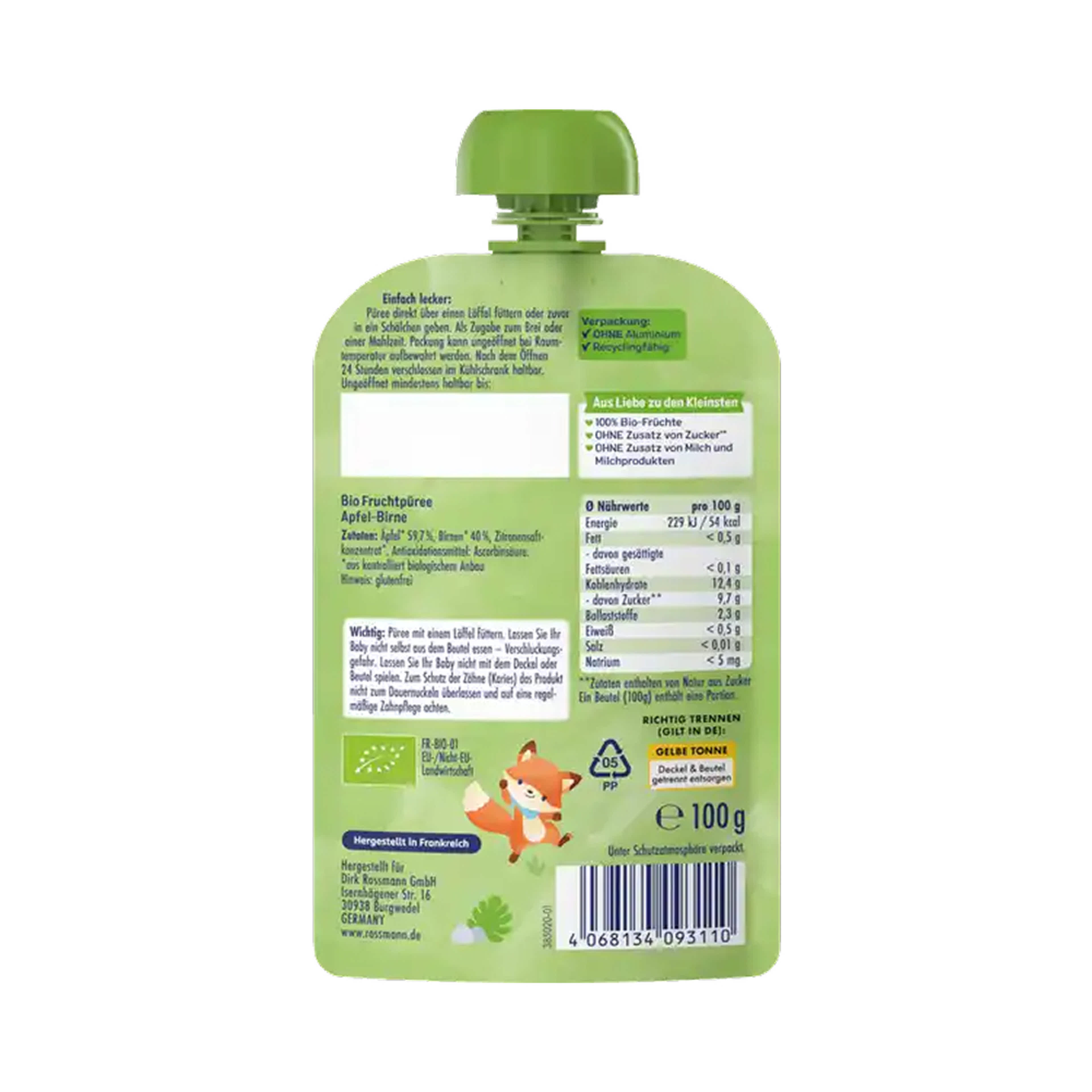 Babydream Bio gyümölcspüré almával és körtével 6 hónapos kortól - 100 g