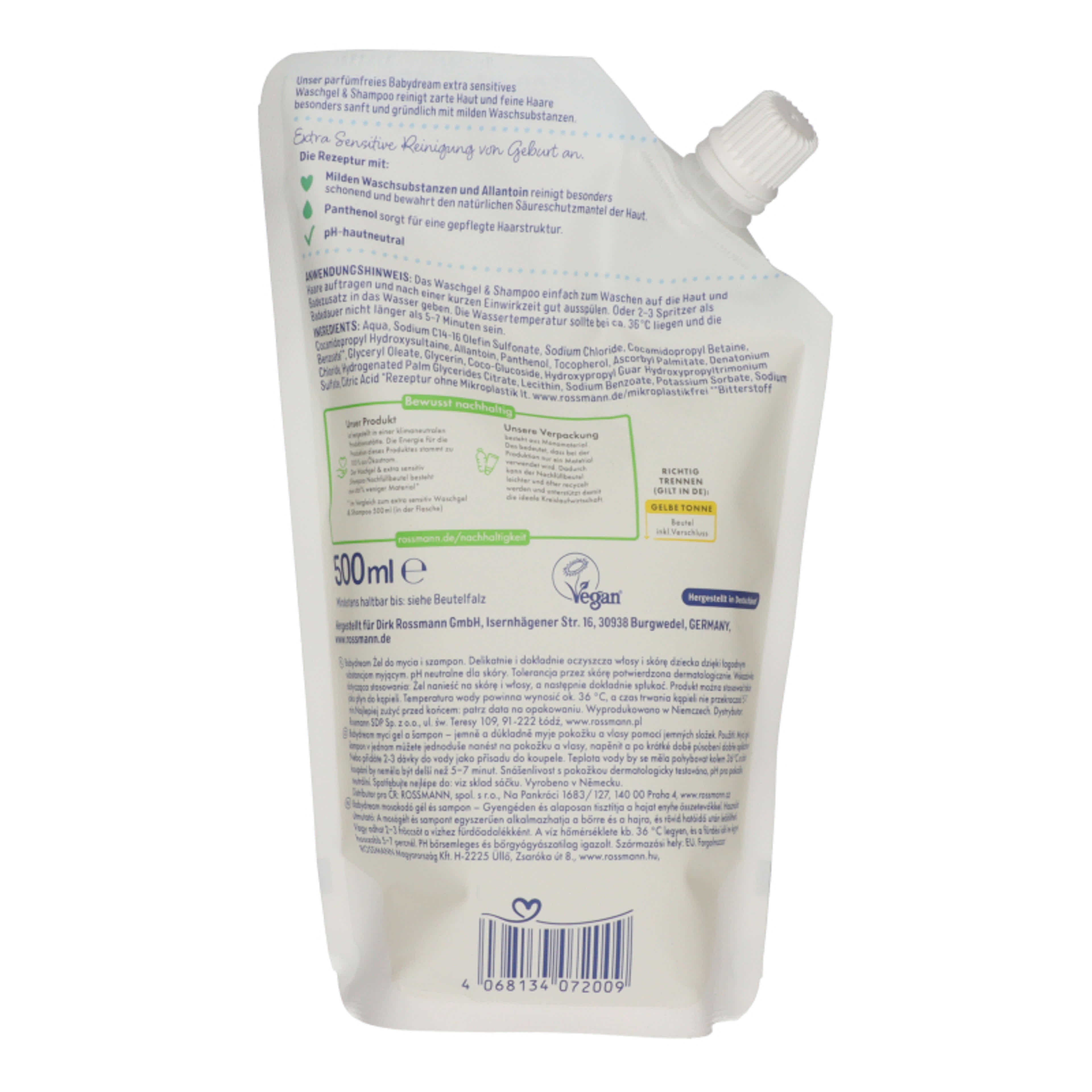 Babydream Sensitive mosokodó és sampon utántöltő - 500 ml