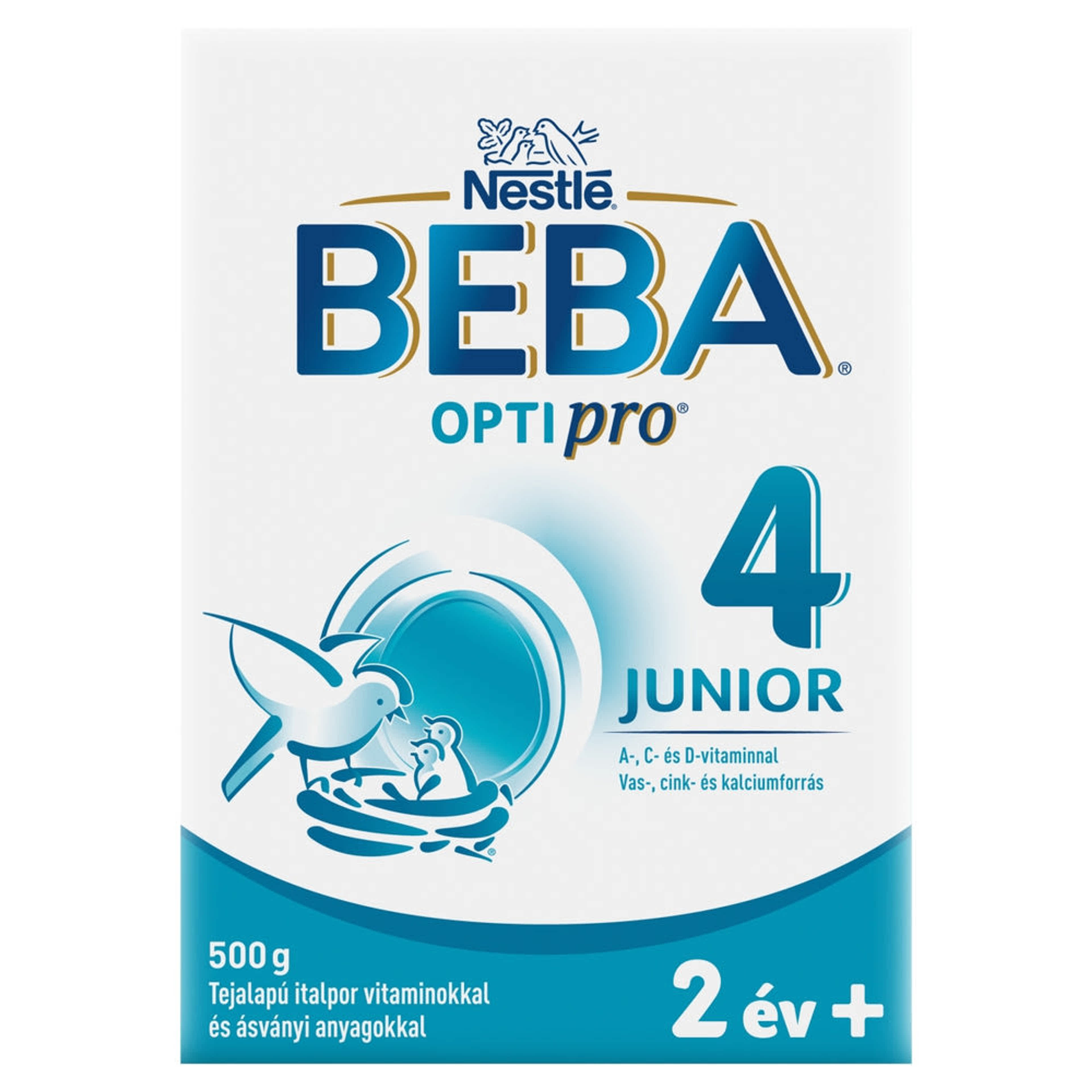 A Beba Optipro 4 Junior 2 éves kortól adható gyerekital, nem adható anyatej- helyettesítő és -kiegészítő tápszerként az első 2 életévben. Folytasd a szoptatást, ameddig lehetséges. A változatos és kiegyensúlyozott étrend, az egészséges életmód nélkülözhetetlen az egészség megőrzéséhez.