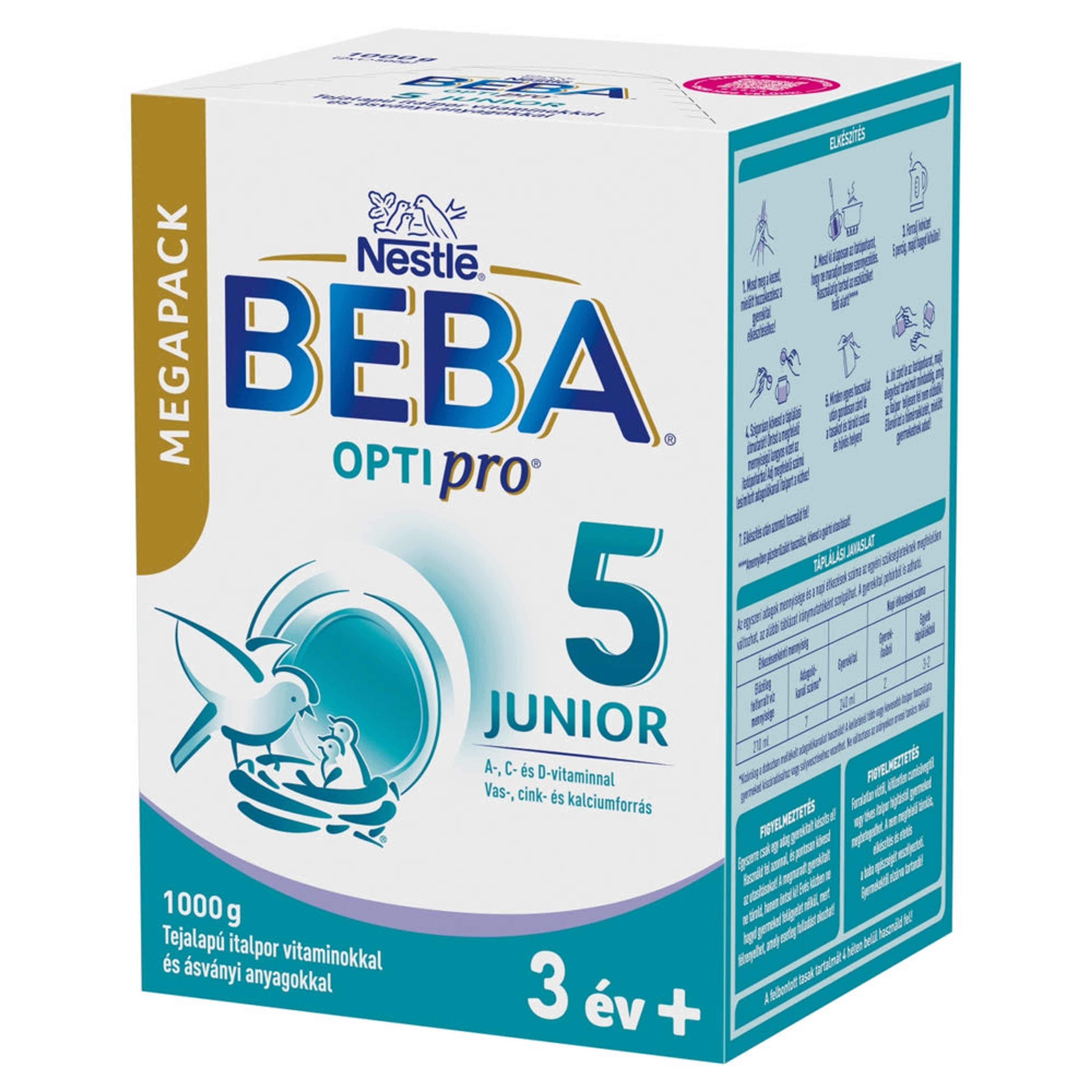 A BEBA OPTIPRO 5 Junior 3 éves kortól adható gyerekital, nem adható anyatej-helyettesítő és -kiegészítő tápszerként korábbi életkorban. A változatos és kiegyensúlyozott étrend, az egészséges életmód nélkülözhetetlen az egészség megőrzéséhez.