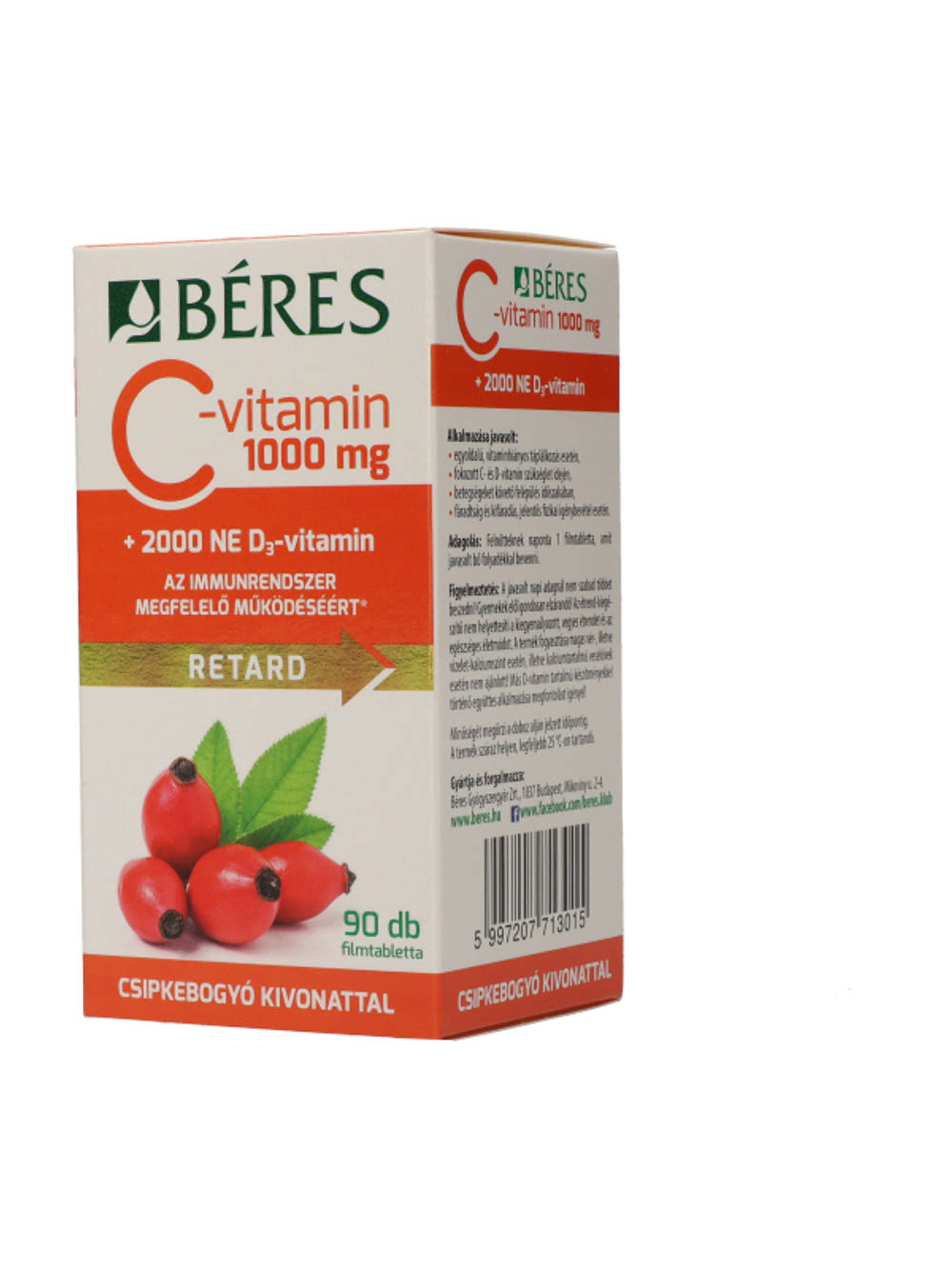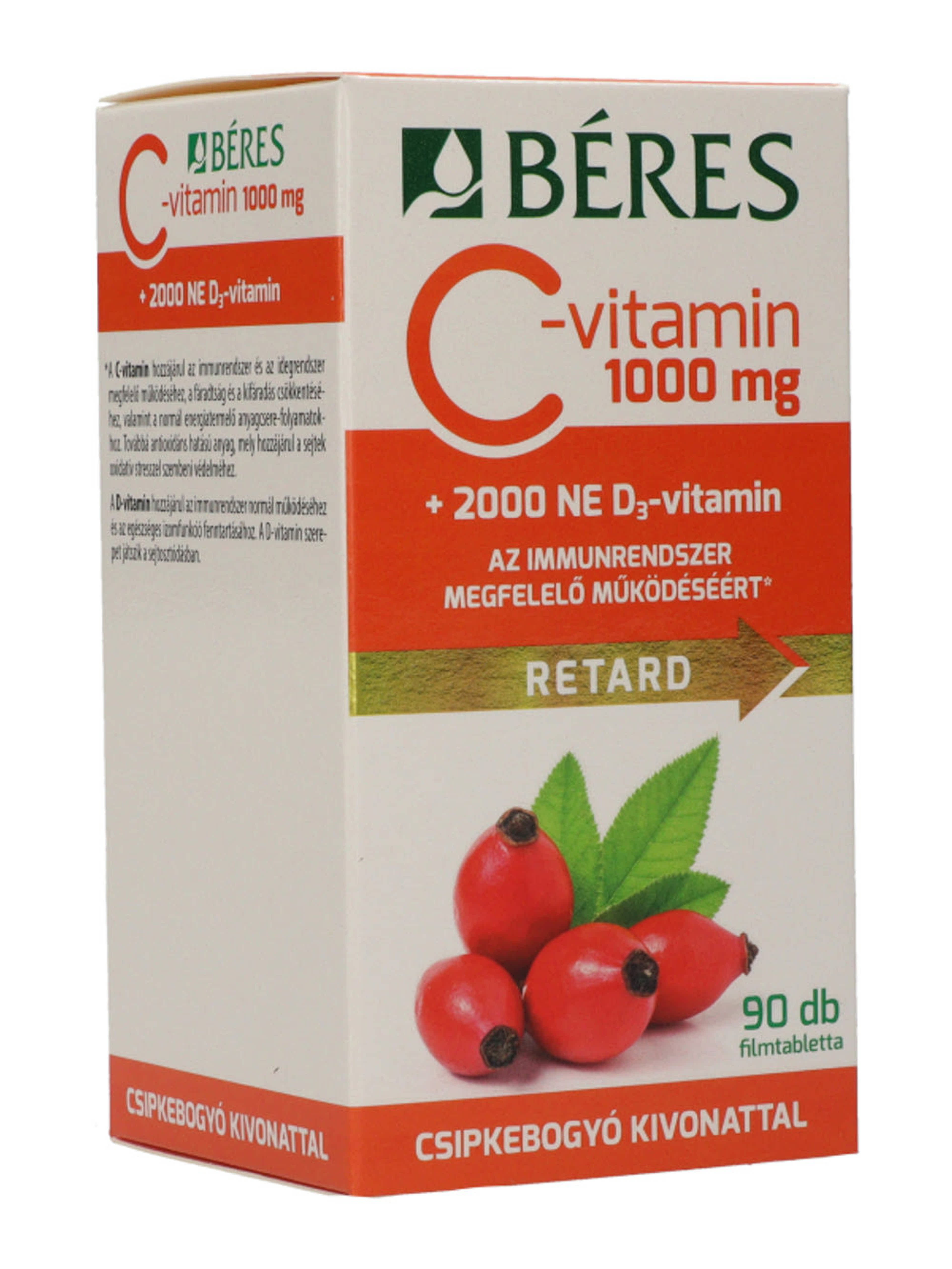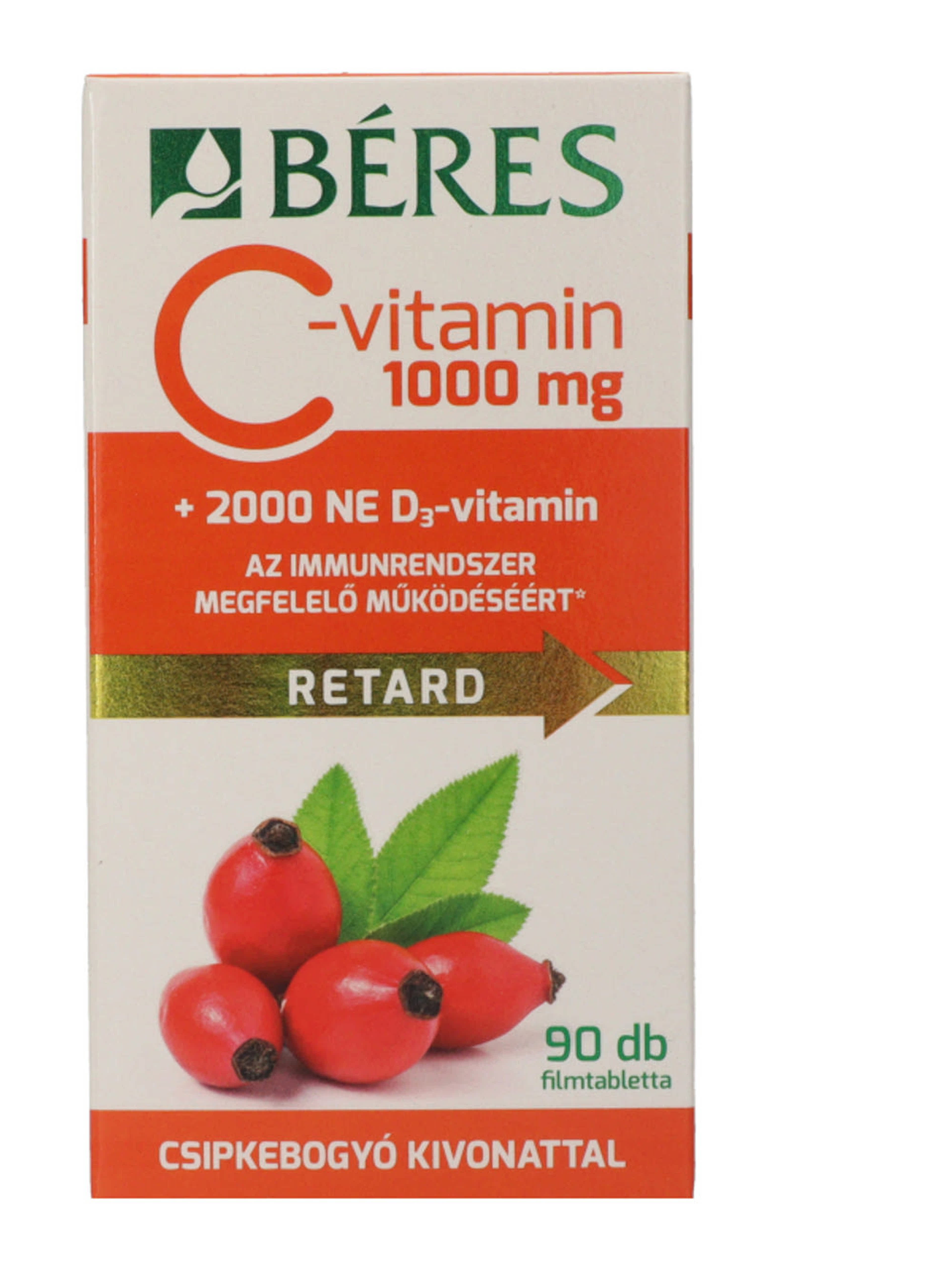 Béres C-vitamin 1000 mg Retard csipkebogyó kivonattal + 2000 NE D₃-vitamin filmatabletta - 90 db