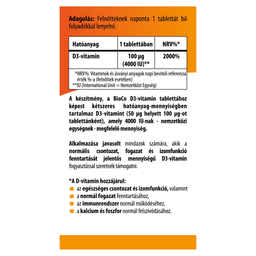 BioCo D3-vitamin Forte 4000 IU étrend-kiegészítő tabletta - 100 db