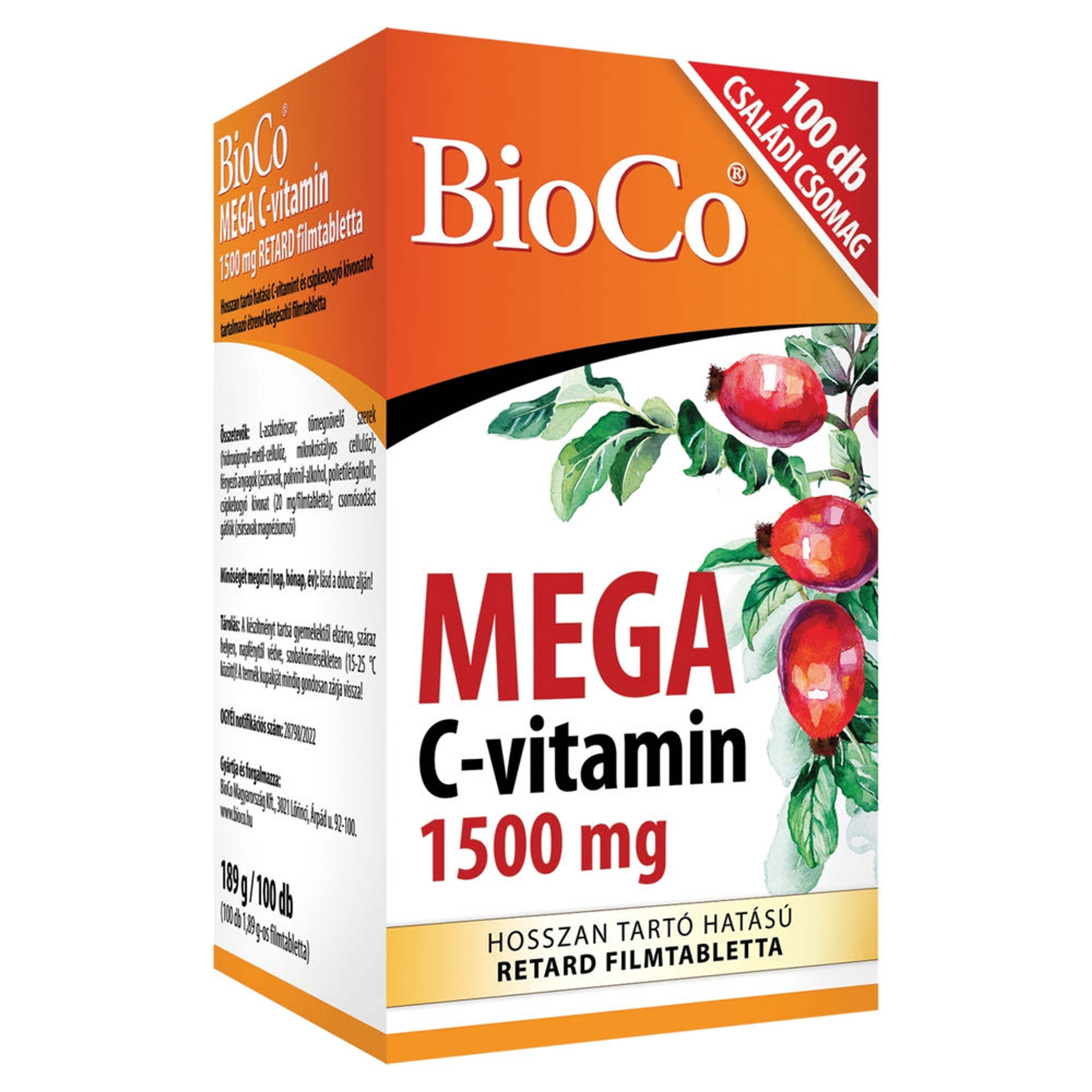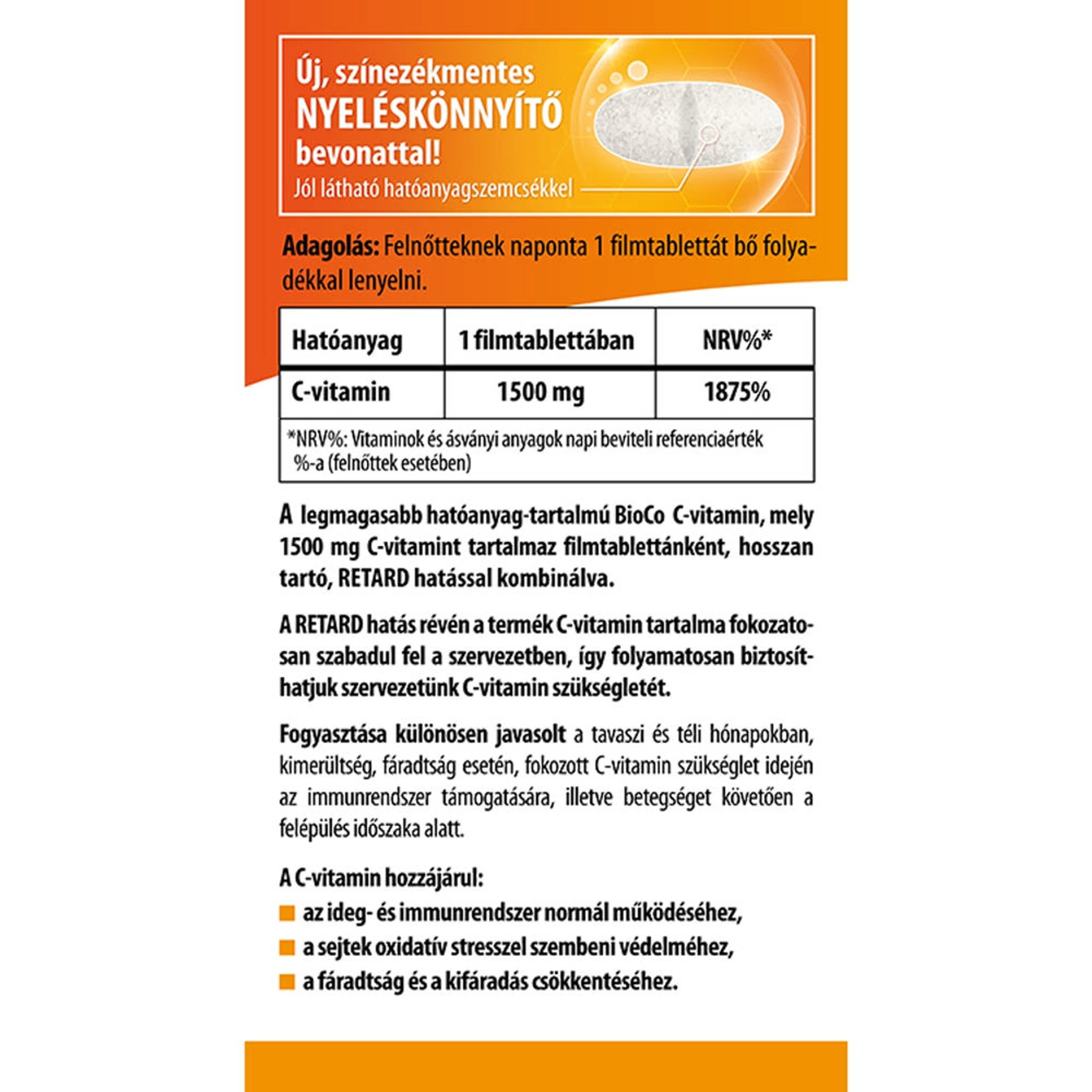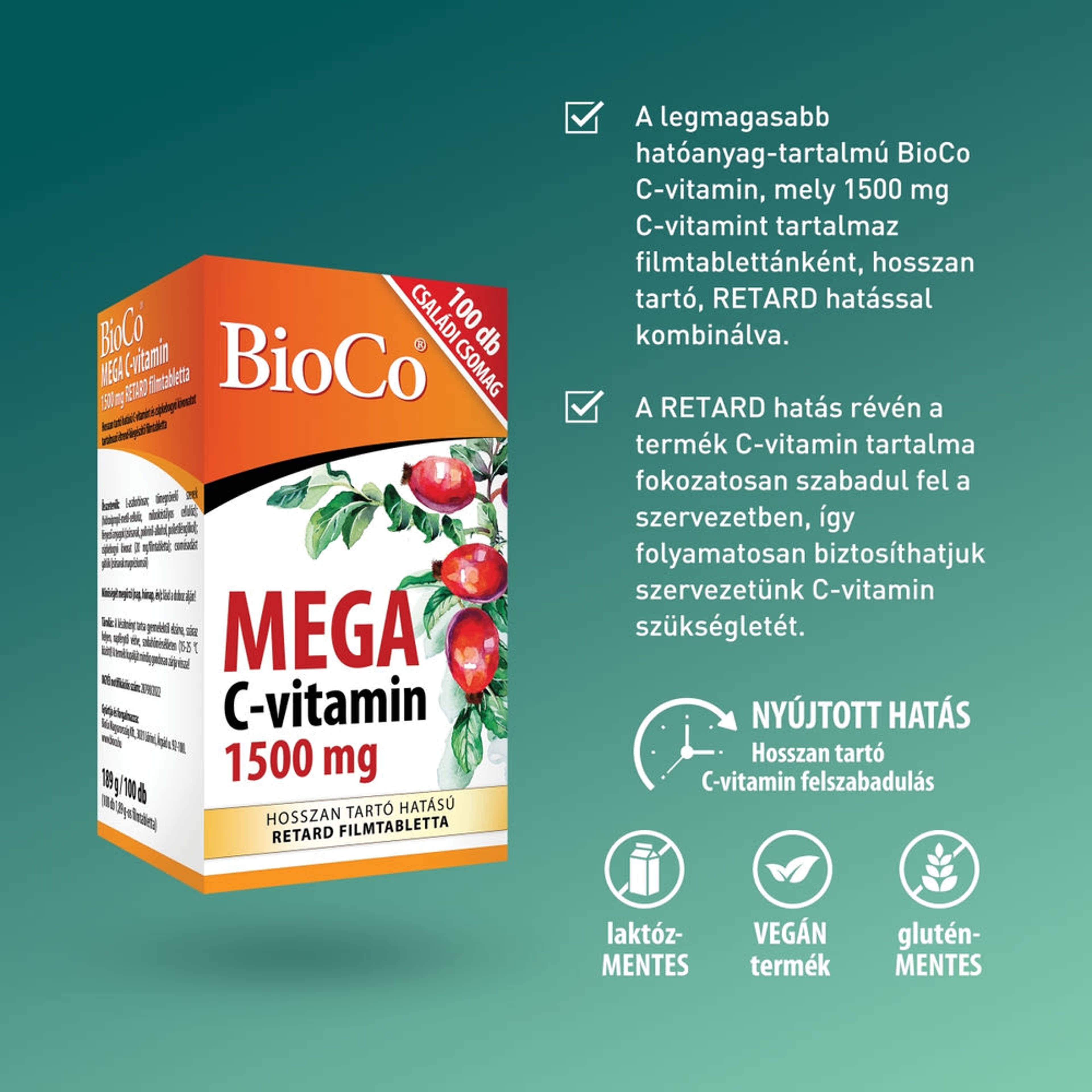 BioCo MEGA C-vitamin 1500 mg Retard étrend-kiegészítő filmtabletta - 100 db