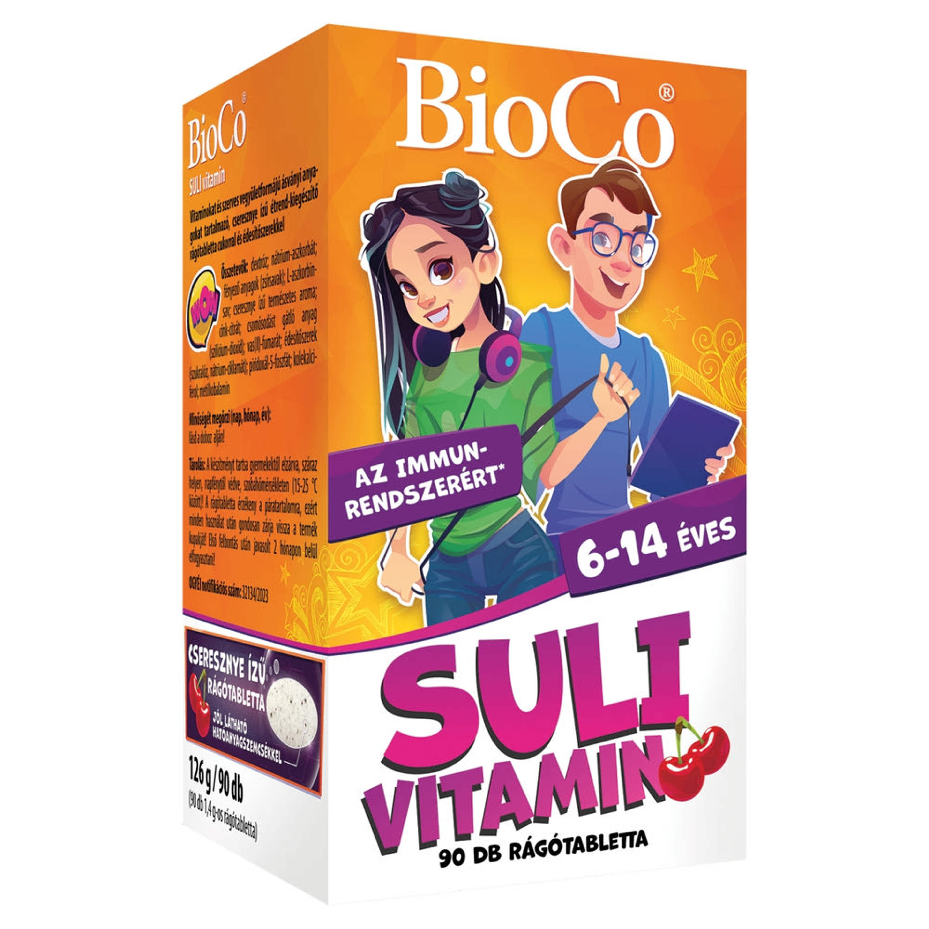 BioCo Suli vitamin 6-14 éveseknek cseresznye ízű étrend-kiegészítő rágótabletta - 90 db