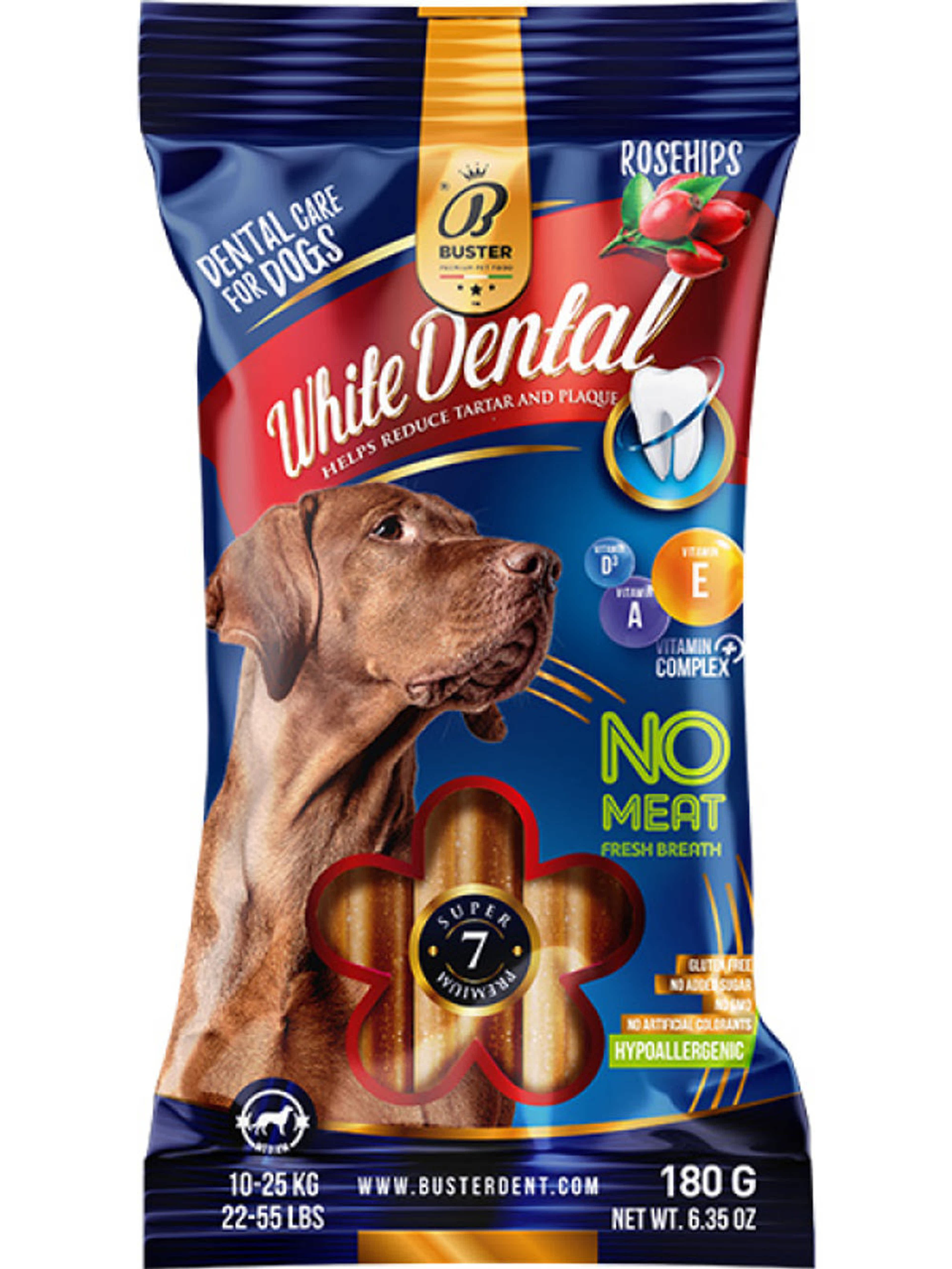 A Buster Dental stickek mindegyike gluténmentes, nem tartalmaznak hozzáadott cukrot, és mesterséges színezőanyagot sem. Célunk a kutyák szájhigiéniájának javításán túl a prevenció, valamint a testi és szellemi egyensúlyuk segítse.
