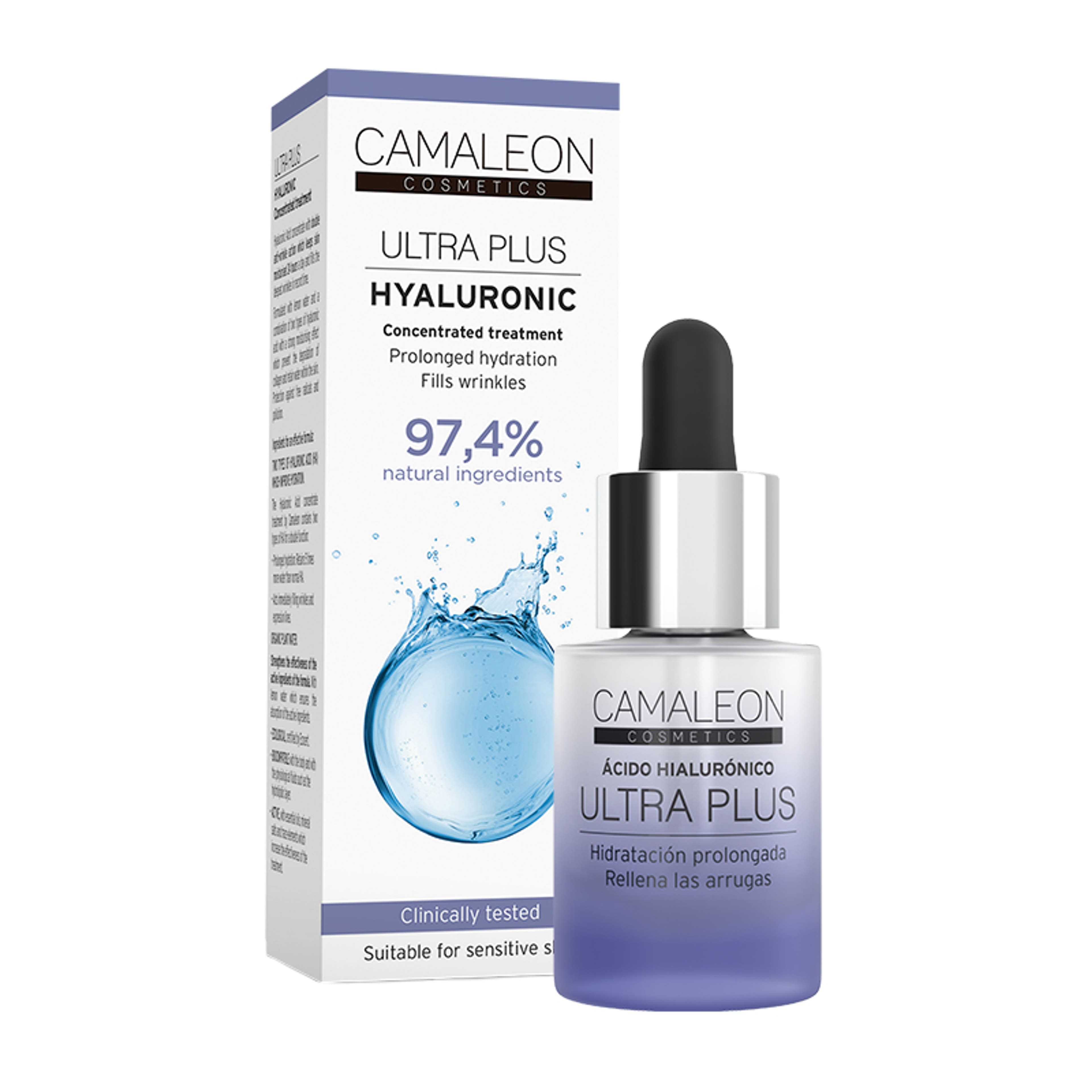 Könnyen behatol a bőrbe , feltölti a ráncokat ,mélyen hidratál és fokozza a bőr feszességét. Prémium ránctalanító szérum, mely kétféle hialuronsavat tartalmaz különböző molekulaméretben, citromvíz-alapban. Ez a 97,4%-ban természetes összetevőkből álló hialuronsavas arckezelés erőteljesebb, mint egy szérum, mivel több hatóanyagot tartalmaz. A kisebb méretű molekuláknak köszönhetően nagyobb a felszívódási képessége, a nagyobb molekulák pedig extra vízmegkötő képességűek, 5x hatékonyabbak mint a hagyományos hialuronsav. Látványos hatás 7 napon belül,. Nem okoz fényérzékenységet.