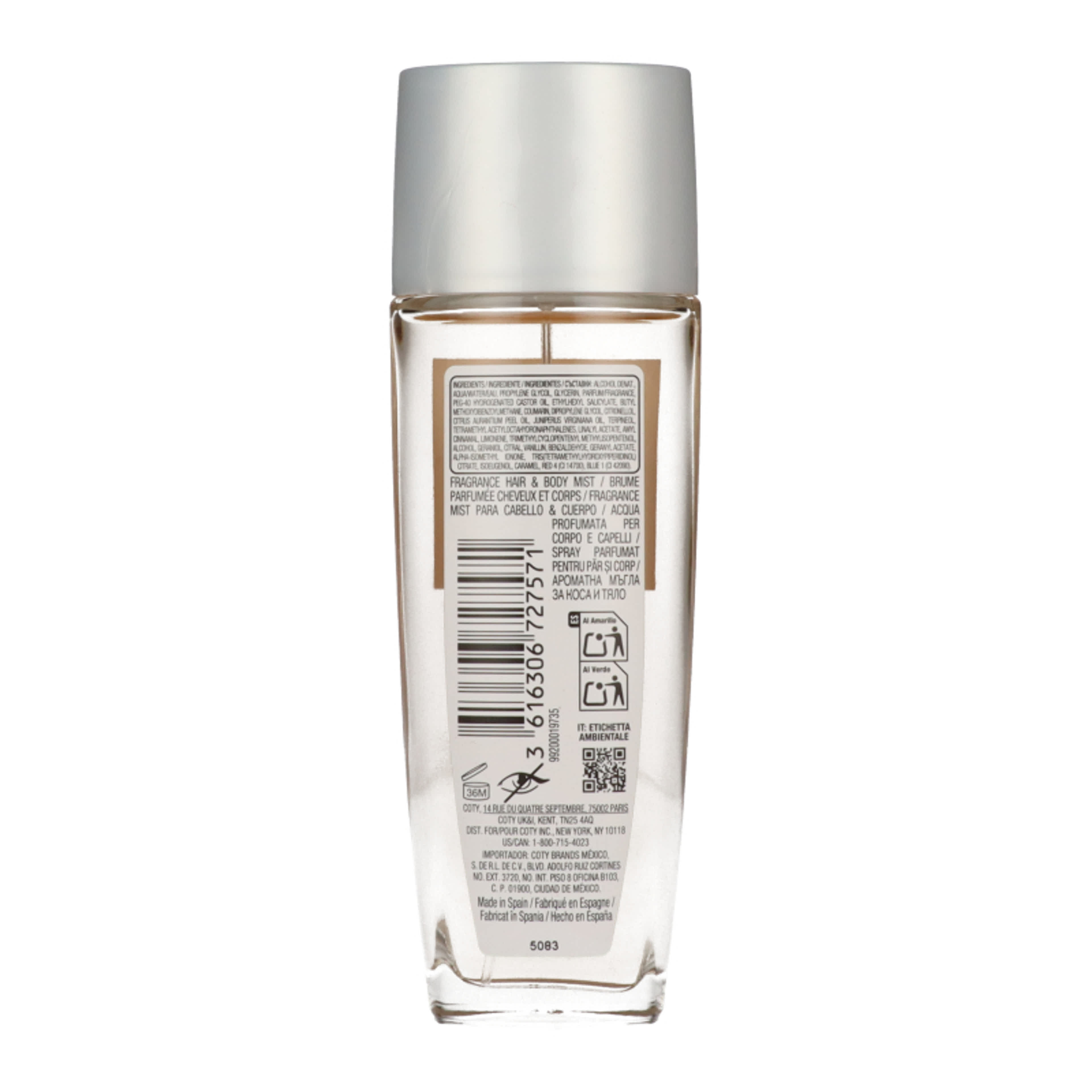 Alcohol Denat., Aqua/Water/Eau, Propylene Glycol, Glycerin, Parfum/Fragrance, Peg-40 Hydrogenated Castor Oil, Ethylhexyl Salicylate, Butyl Methoxydibenzoylmethane, Coumarin, Dipropylene Glycol, Citronellol, Citrus Aurantium Peel Oil, Juniperus Virginiana Oil, Terpineol, Tetramethyl Acetyloctahydronaphthalenes, Linalyl Acetate, Amyl Cinnamal, Limonene, Trimethylcyclopentenyl Methylisopentenol, Alcohol, Geraniol, Citral, Vanillin, Benzaldehyde, Geranyl Acetate, Alpha-Isomethyl Ionone, Tris(Tetramethylhydroxypiperidinol) Citrate, Isoeugenol, Caramel, Red 4 (CI 14700), Blue 1 (CI 42090)