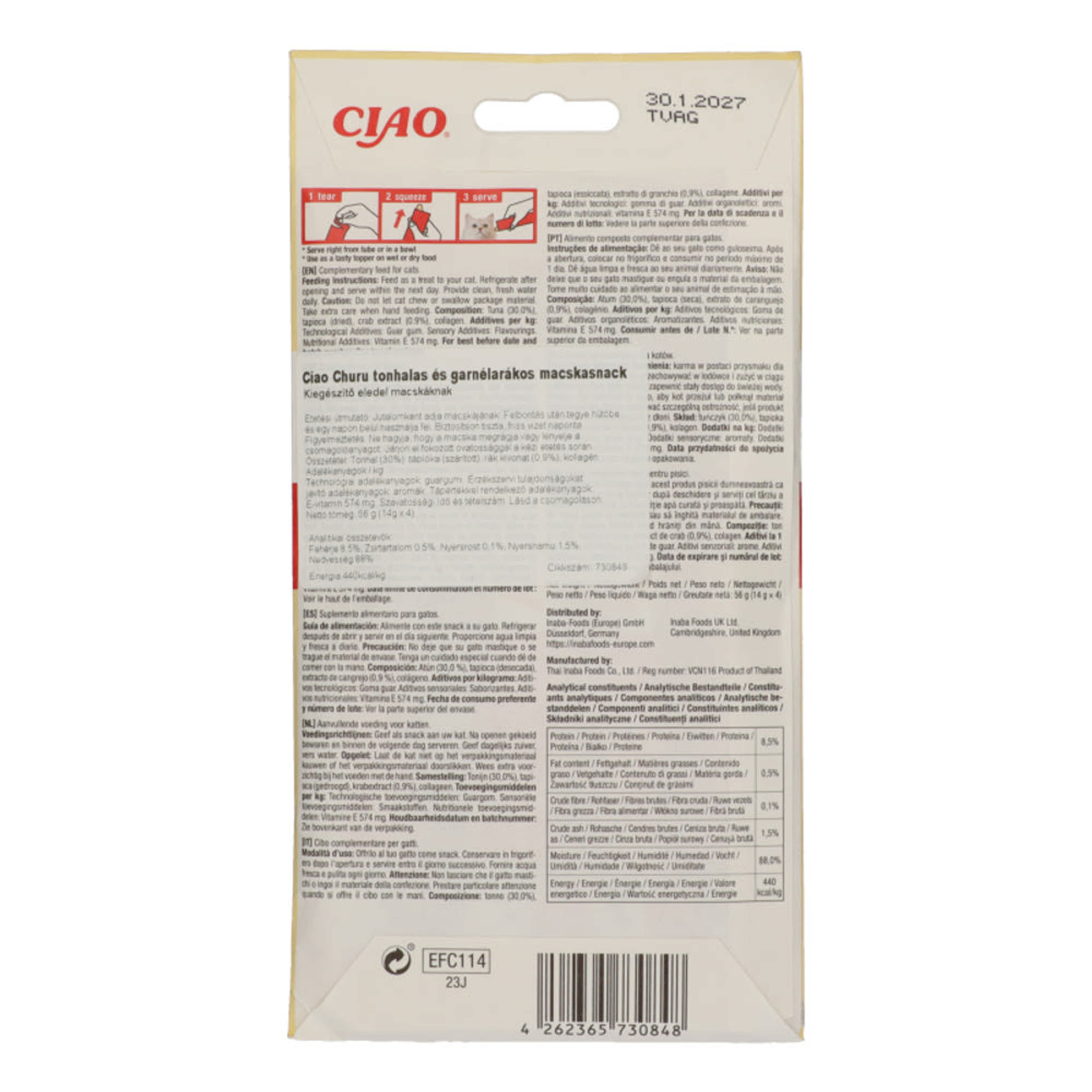 Ciao Churu jutalomfalat macskáknak tonhallal és rák kivonattal - 56 g