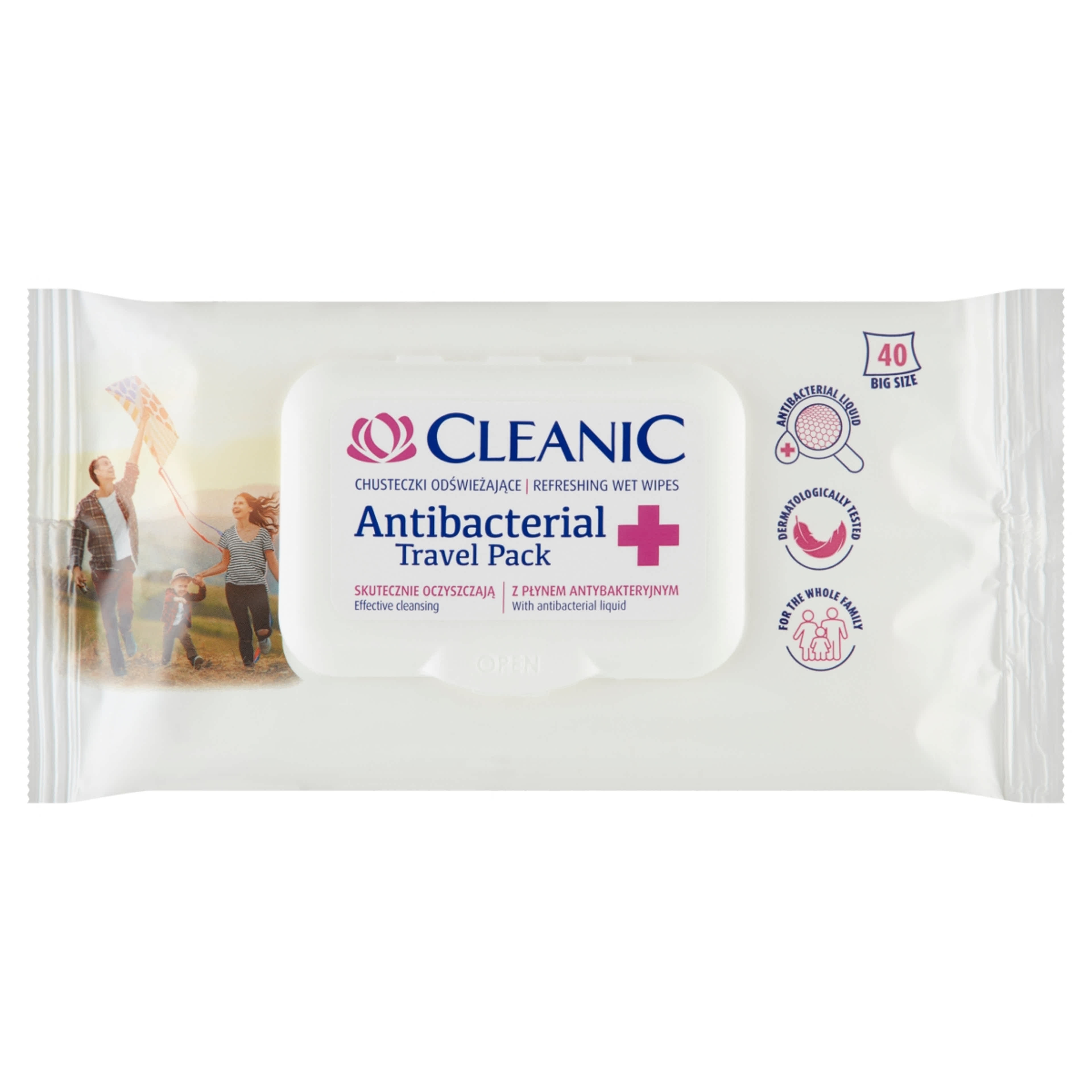 Cleanic Antibacterial Travel Pack nedvesített frissítő törlőkendő - 40 db