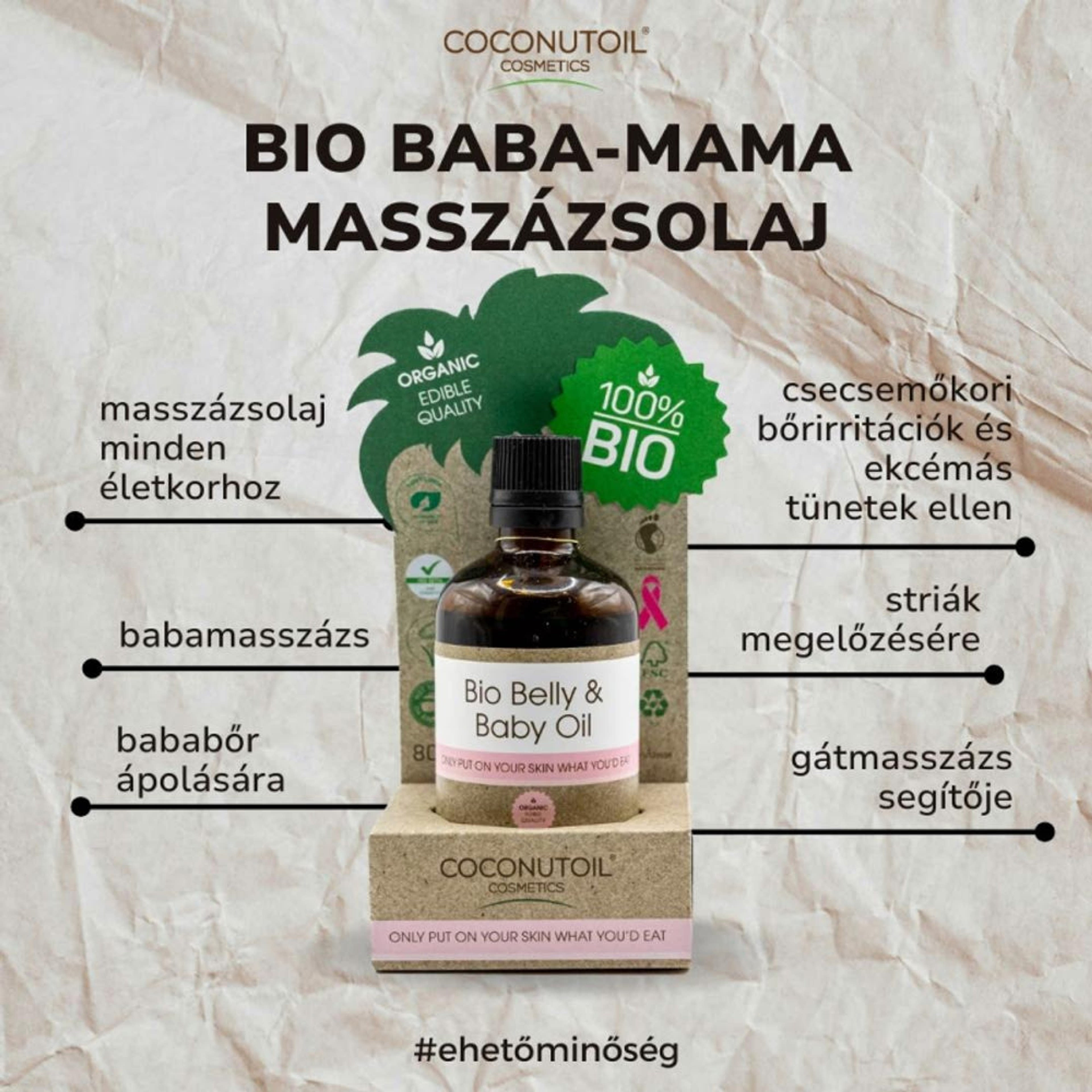 Az organikus olajokból álló Bio Baba-Mama Masszázsolaj, amelyet használhatsz babád bőrének ápolására, és tökéletes állagú a babamasszázs elvégzéséhez. Segíti a fejbőrön, hajlatokban és a bőr apró ráncaiban felgyülemlő szennyeződés, hámfoszlányok, esetleges váladékok eltávolítását is. Már várandósság alatt is nagy segítség lehet, ugyanis elősegítheti a striák megelőzését és a bőr rugalmasságának megtartását.