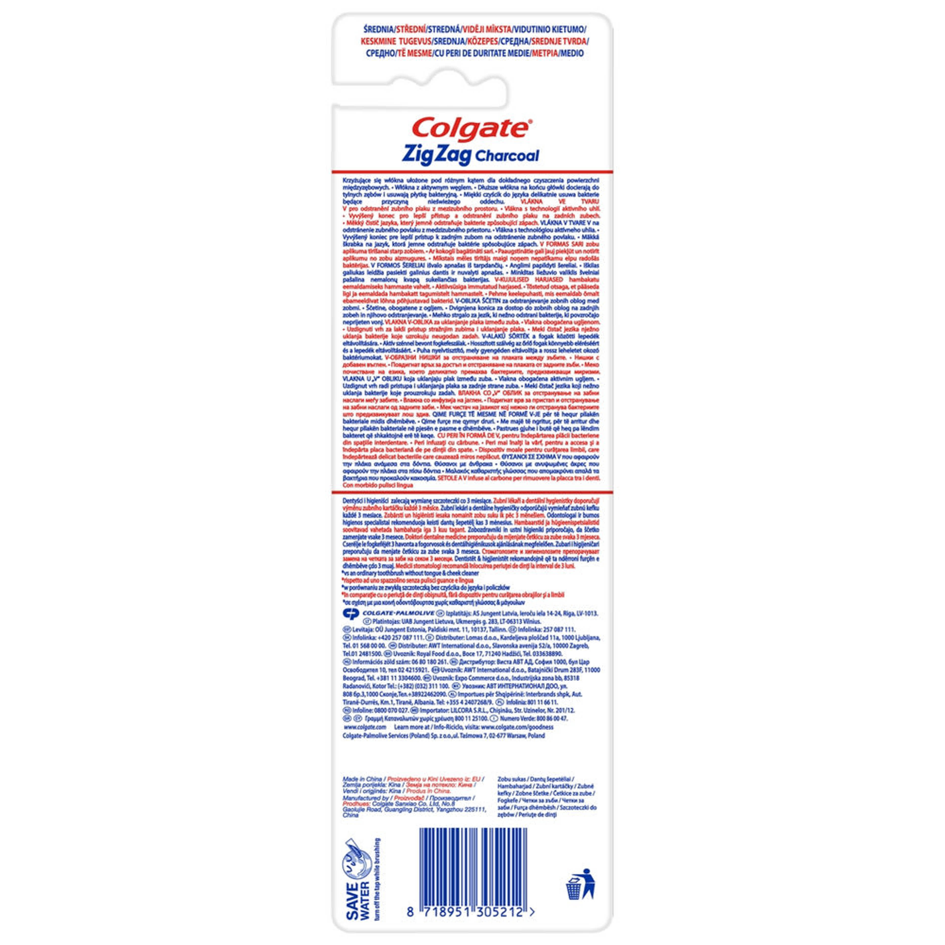 Colgate Zigzag Charcoal Medium fogkefe - 3 db