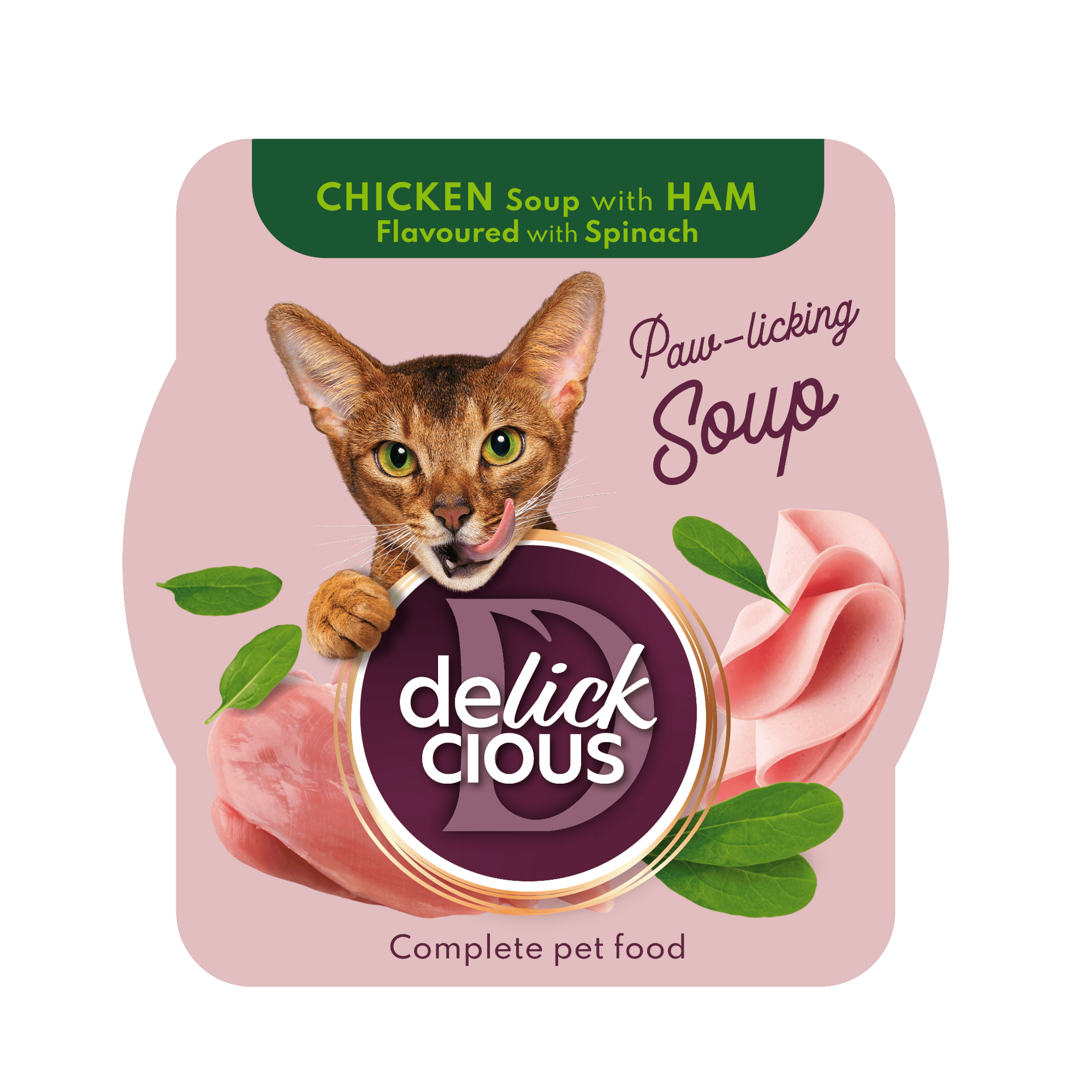 Delickcious csirkeleves macskáknak sonkával és spenóttal - 80 g