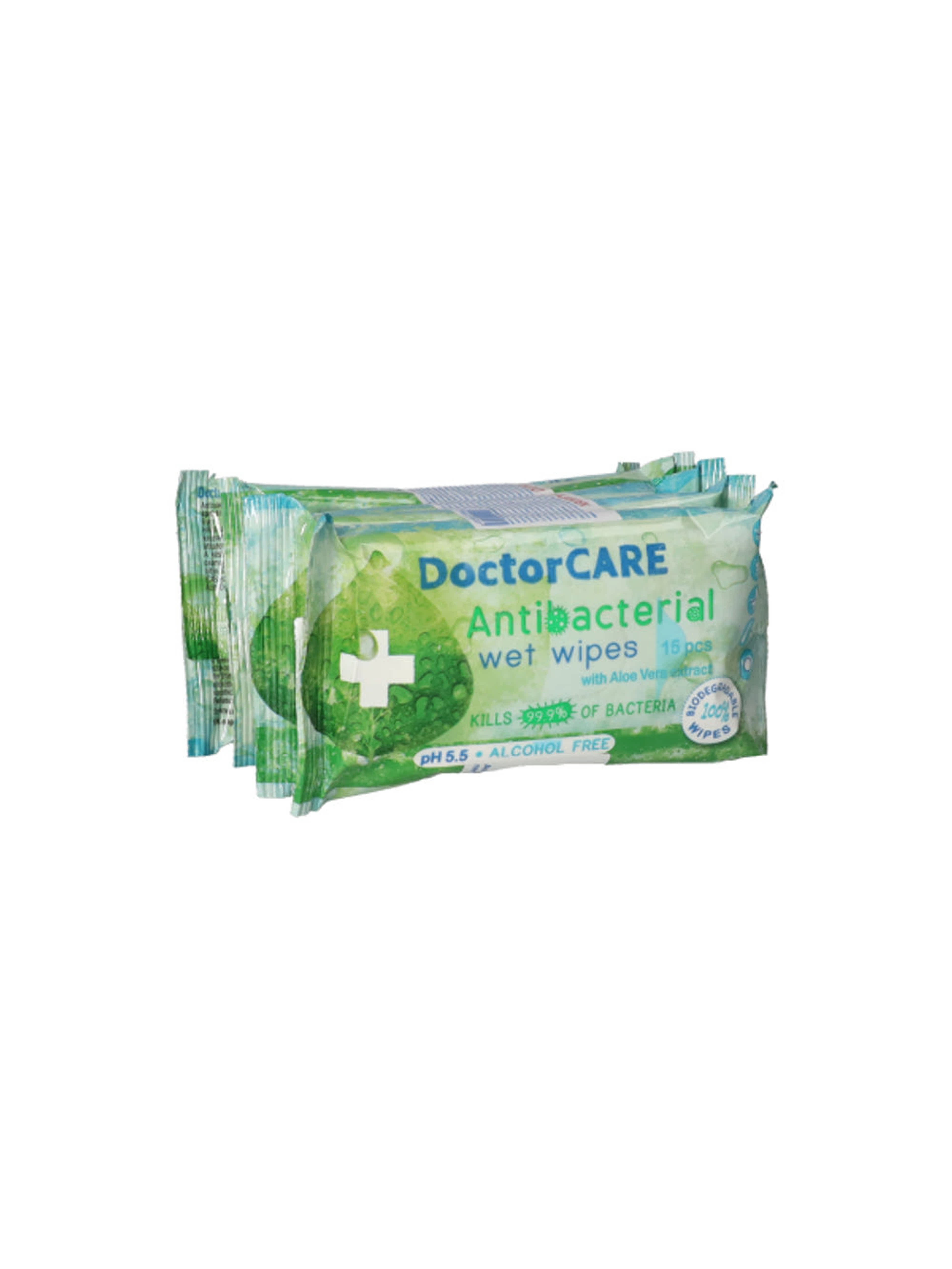 Doctor Care antibakteriális nedves törlőkendő (5x15 db) - 75 db