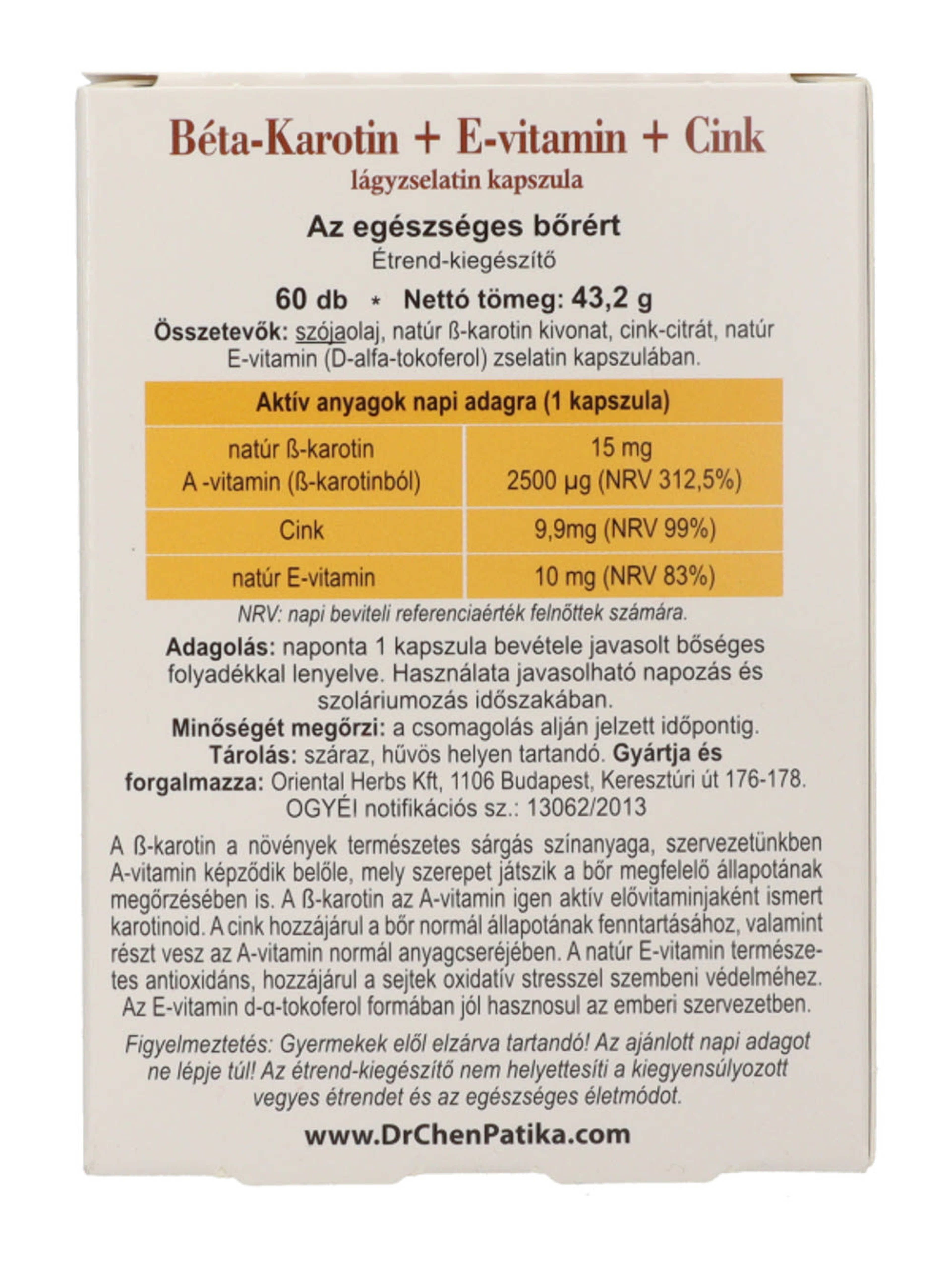Dr. Chen Patika Béta-Karotin lágyzselatin kapszula - 60 db