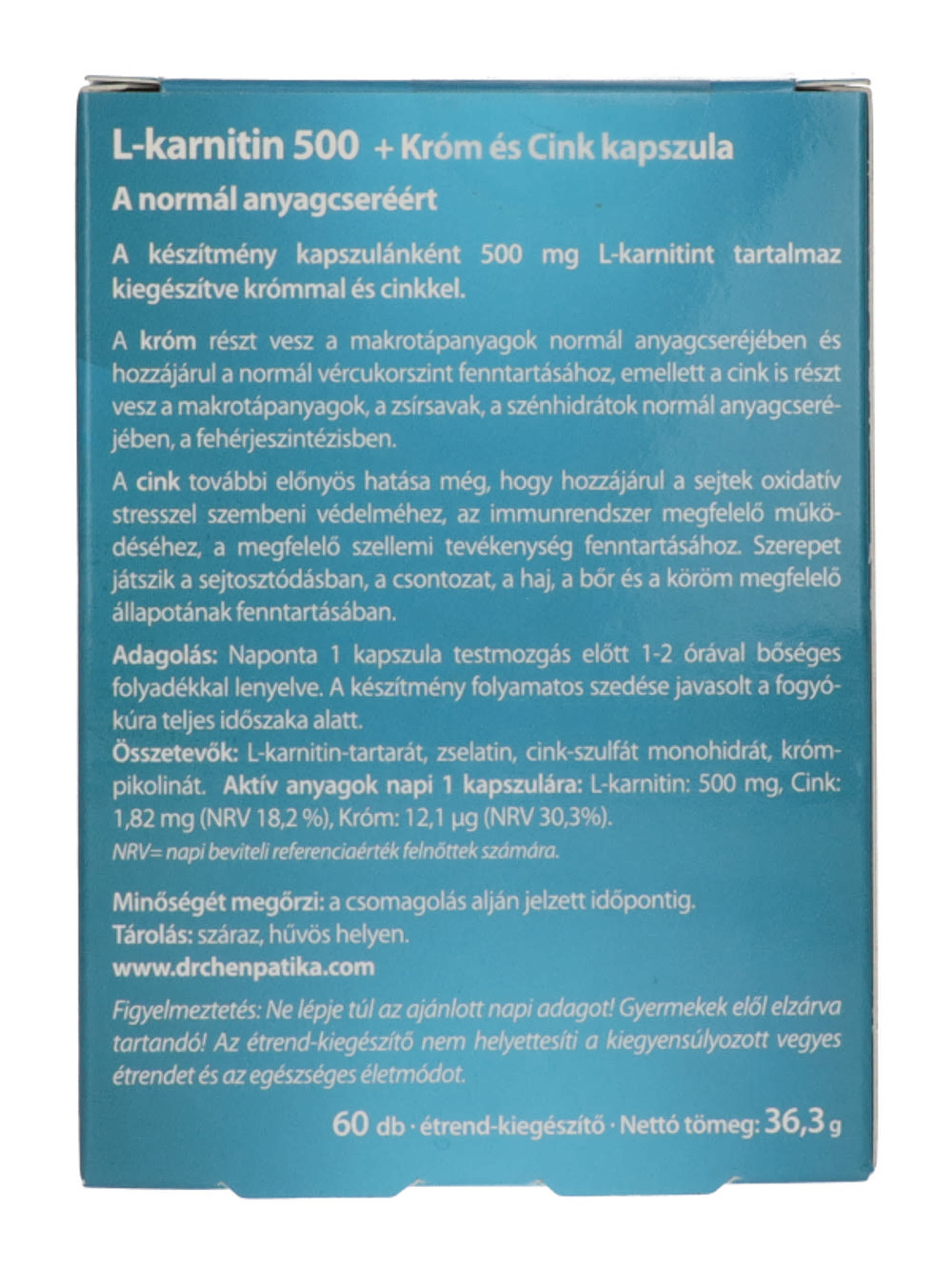 Dr. Chen Patika L-Karnitin 500 mg kapszula krómmal és cinkkel - 60 db