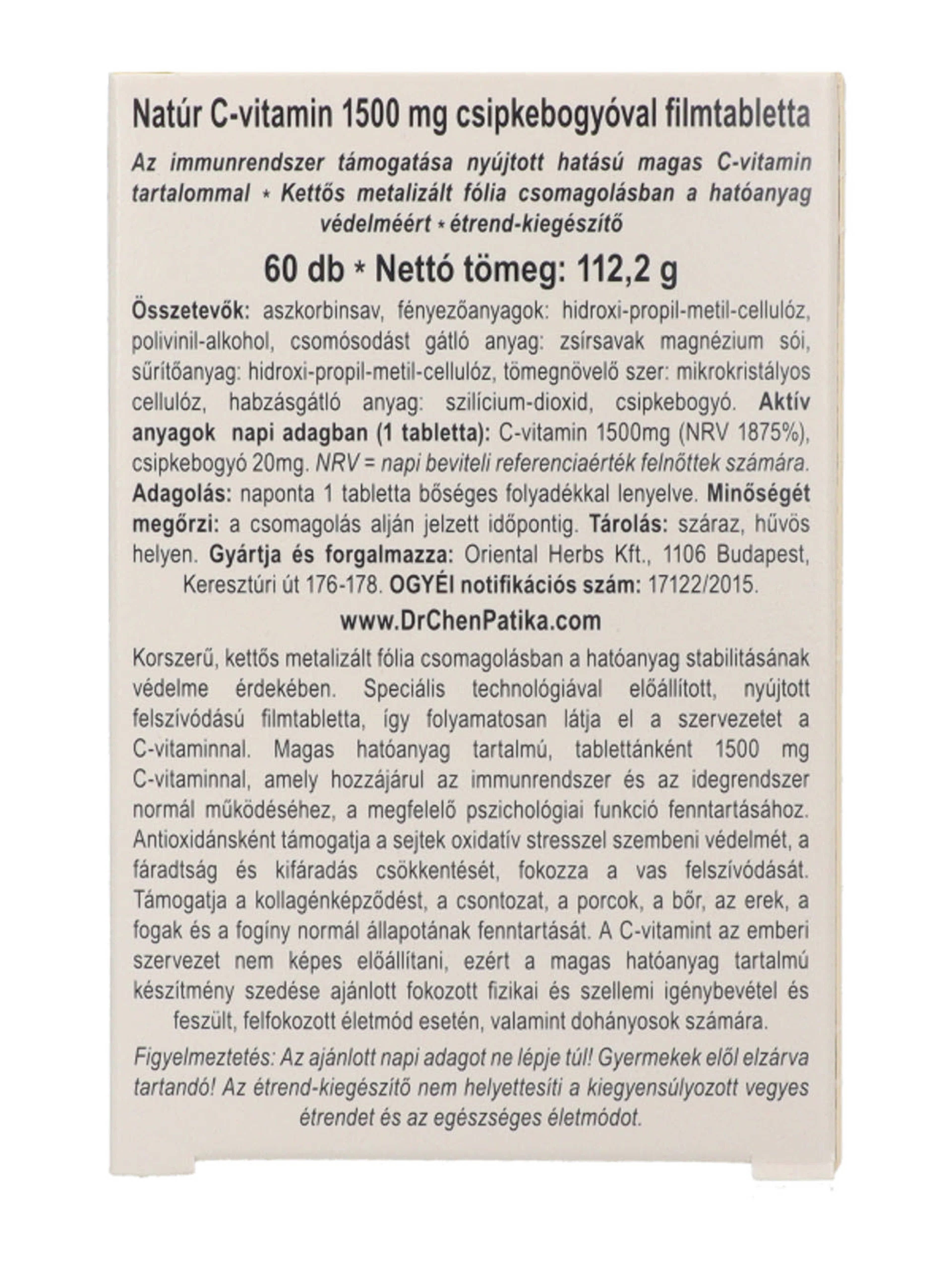 Dr. Chen Patika Natúr C-Vitamin 1500mg Csipkebogyóval tabletta - 60 db