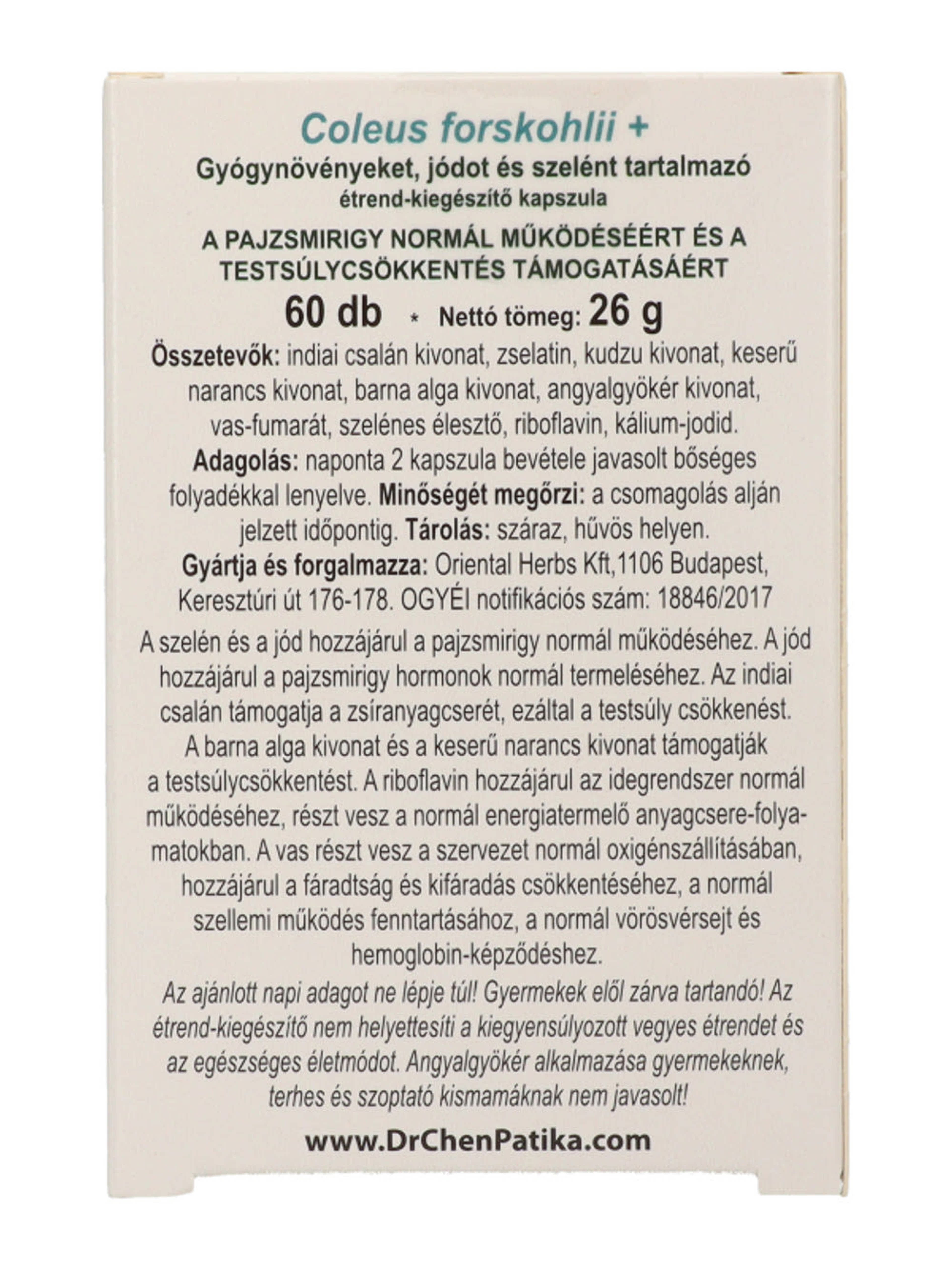Dr. Chen Patika Pajzsmirigy Testsúly-Kontroll kapszula - 60 db