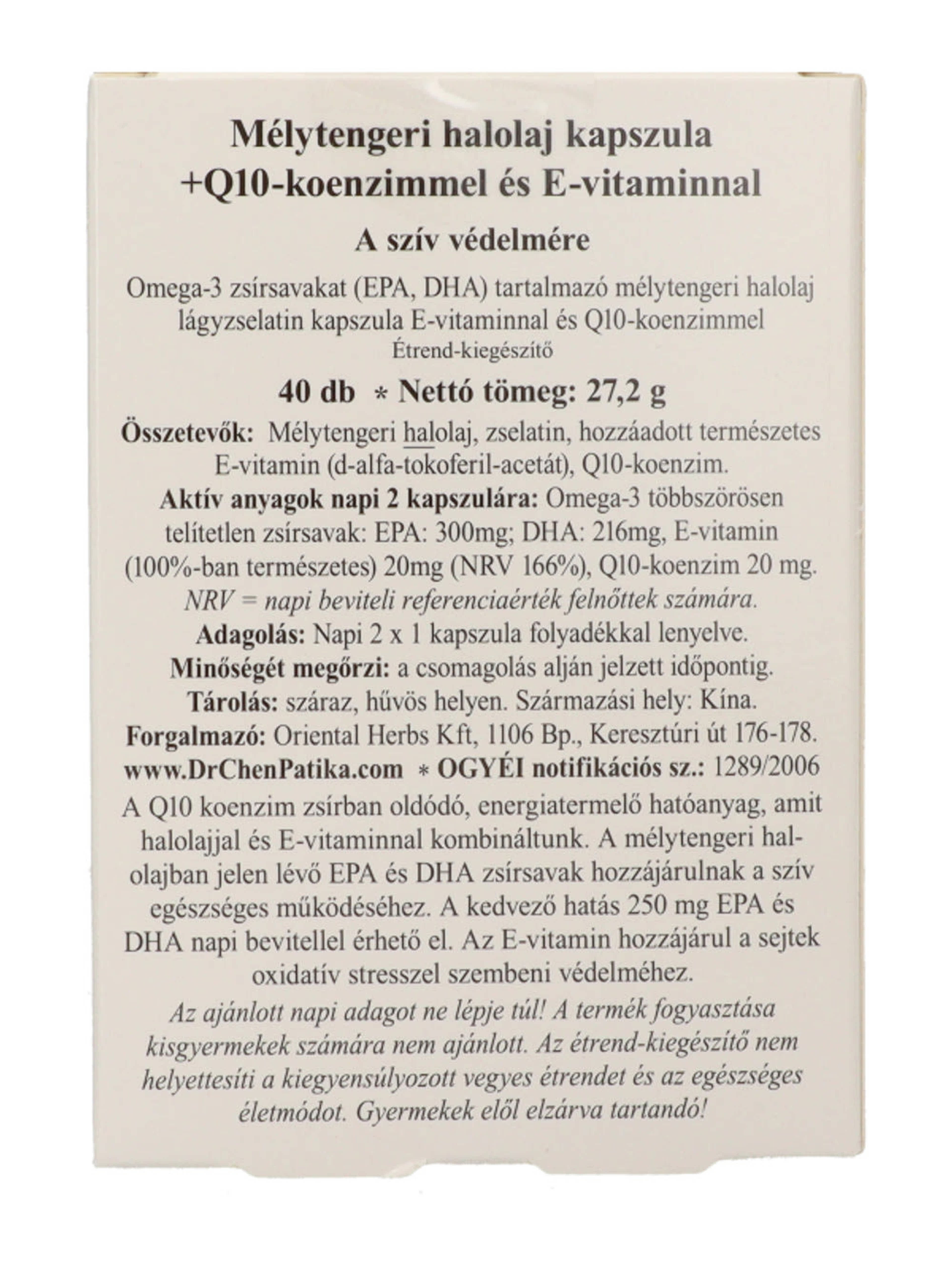 Dr. Chen Patika Q10 + Omega-3 + E-Vitamin kapszula - 40 db