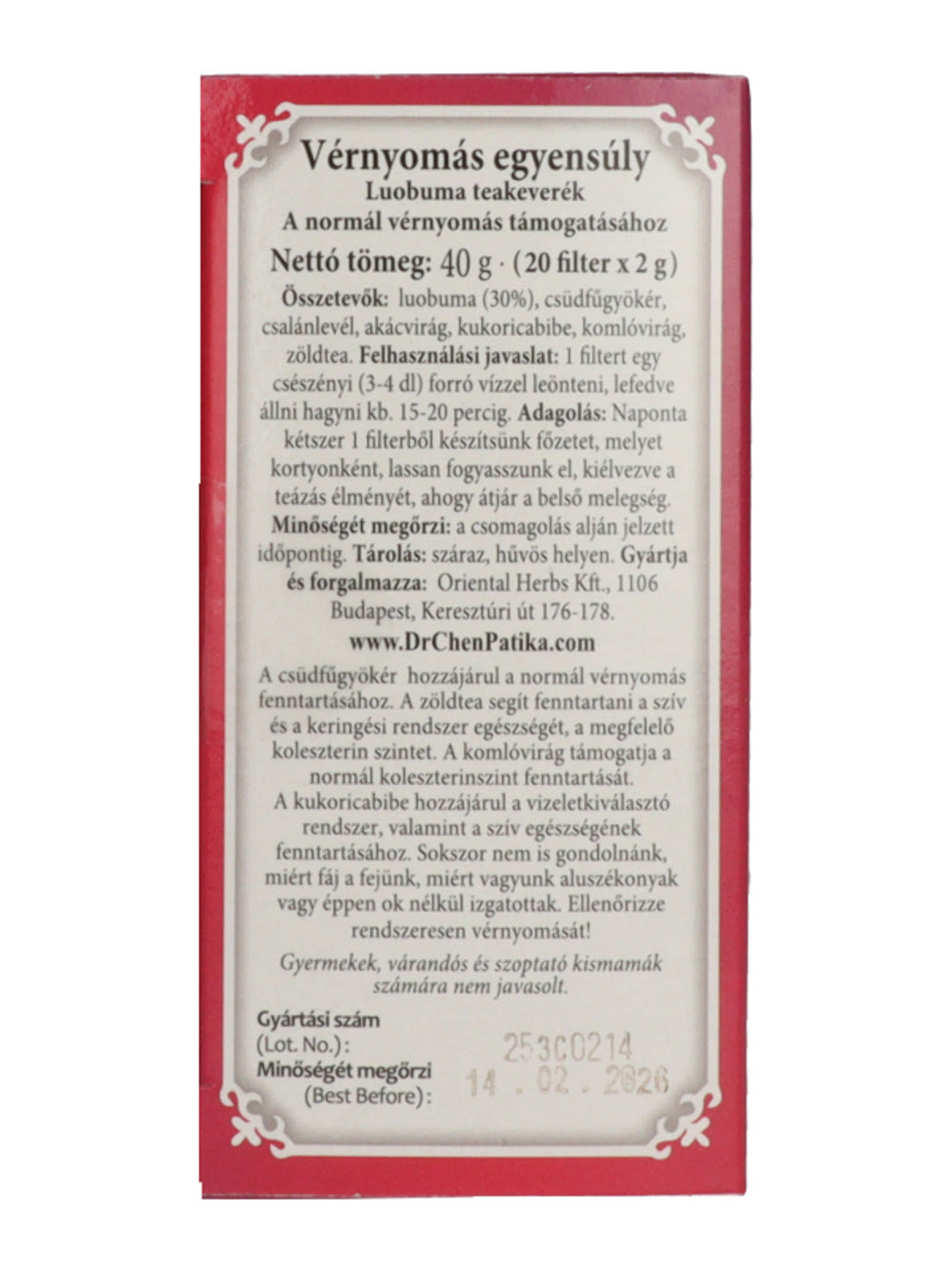 Dr. Chen Patika Vérnyomás Egyensúly Luobuma teakeverék - 20 db