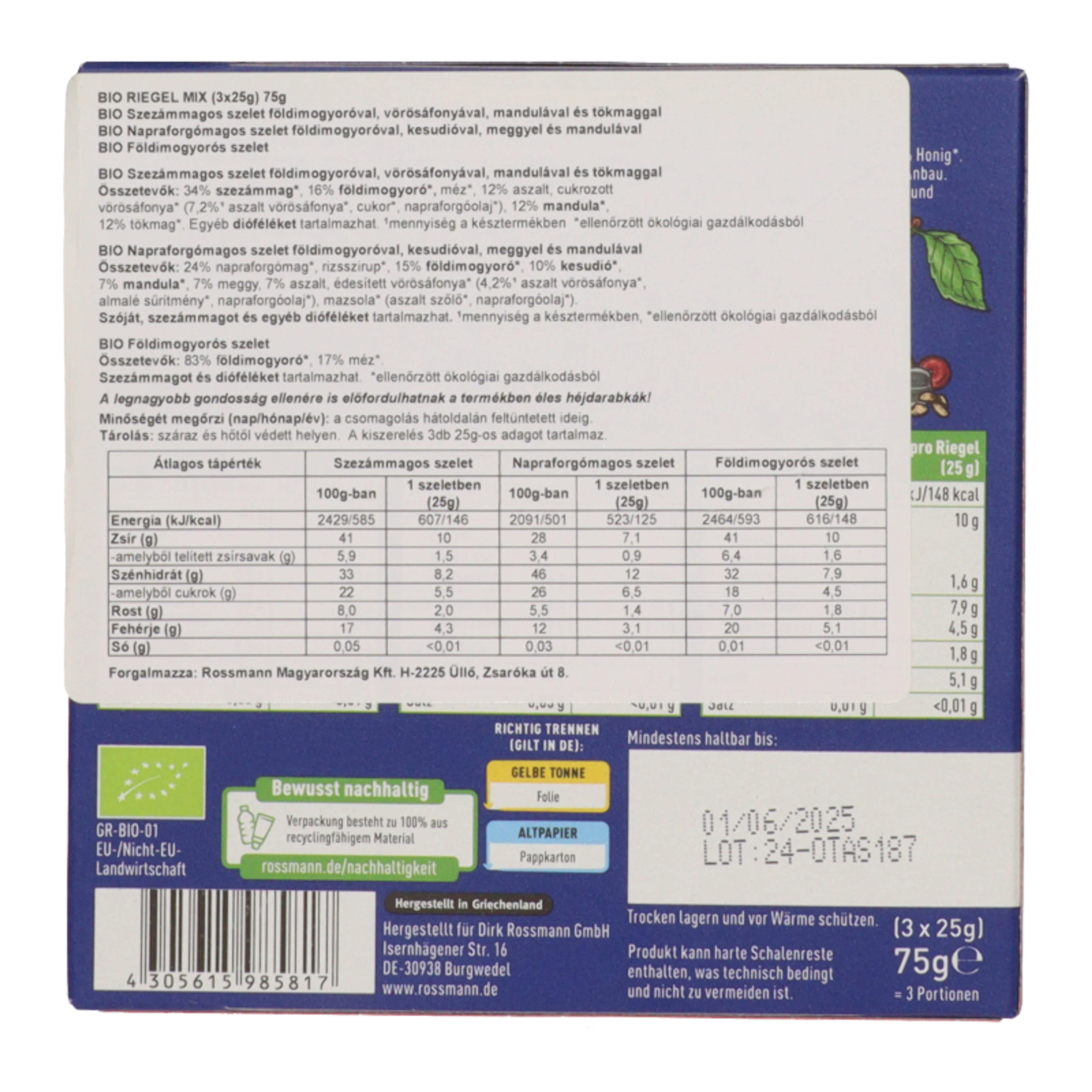 Ener-bio magvas-gyümölcsszelet mix3s pakk - 75 g