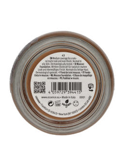nude - Természetes megjelenés: az essence NATURAL MATTE MOUSSE FOUNDATION 43 tiszta szépség textúrájával és vegán összetevőivel, valamint természetesen matt arcbőrével lenyűgöz. Közepes fedést biztosít, és kisimítja a szennyeződéseket. A különleges habalapozót könnyedén eldolgozhatod a bőrben. Az eredmény lágy élességállítást és porszerű felületet eredményez. Kényelmes és könnyű habalapozónk lehetővé teszi a bőr lélegzését. Az essence NATURAL MATTE MOUSSE FOUNDATION 43 bőrgyógyászatilag tesztelt, és normál-zsíros bőrre ajánlott.