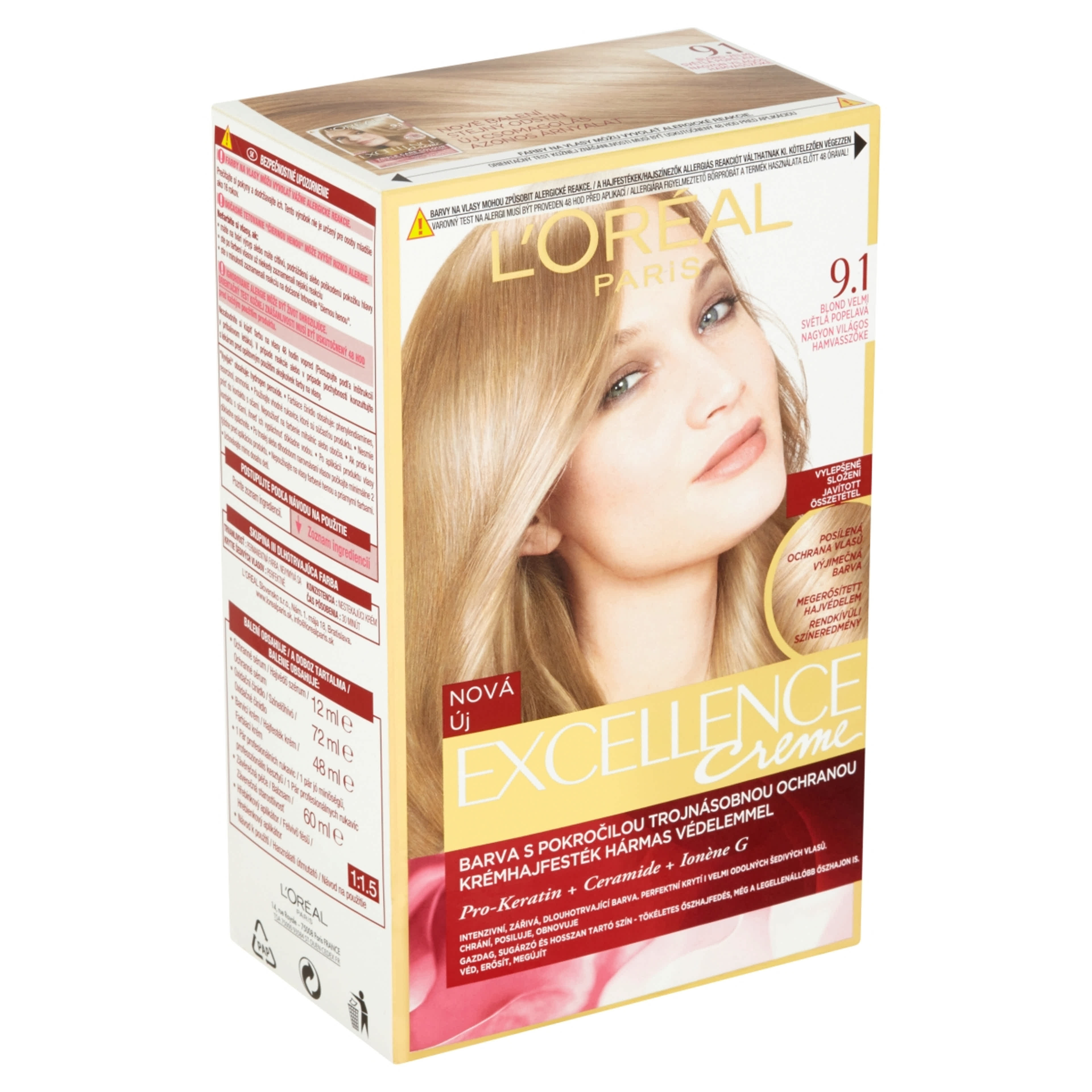 L'Oréal Paris Excellence krémes, tartós hajfesték 9.1 nagyon világos hamvaszszőke - 1 db
