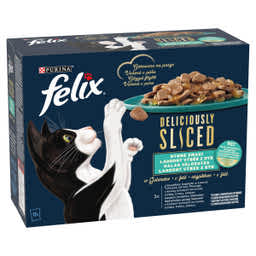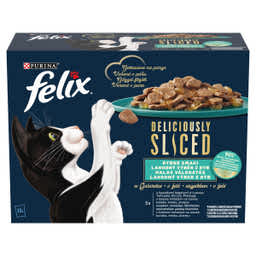 Felix Deliciously Sliced alutasakos eledel macskáknak, halas válogatás 12x80 g - 960 g