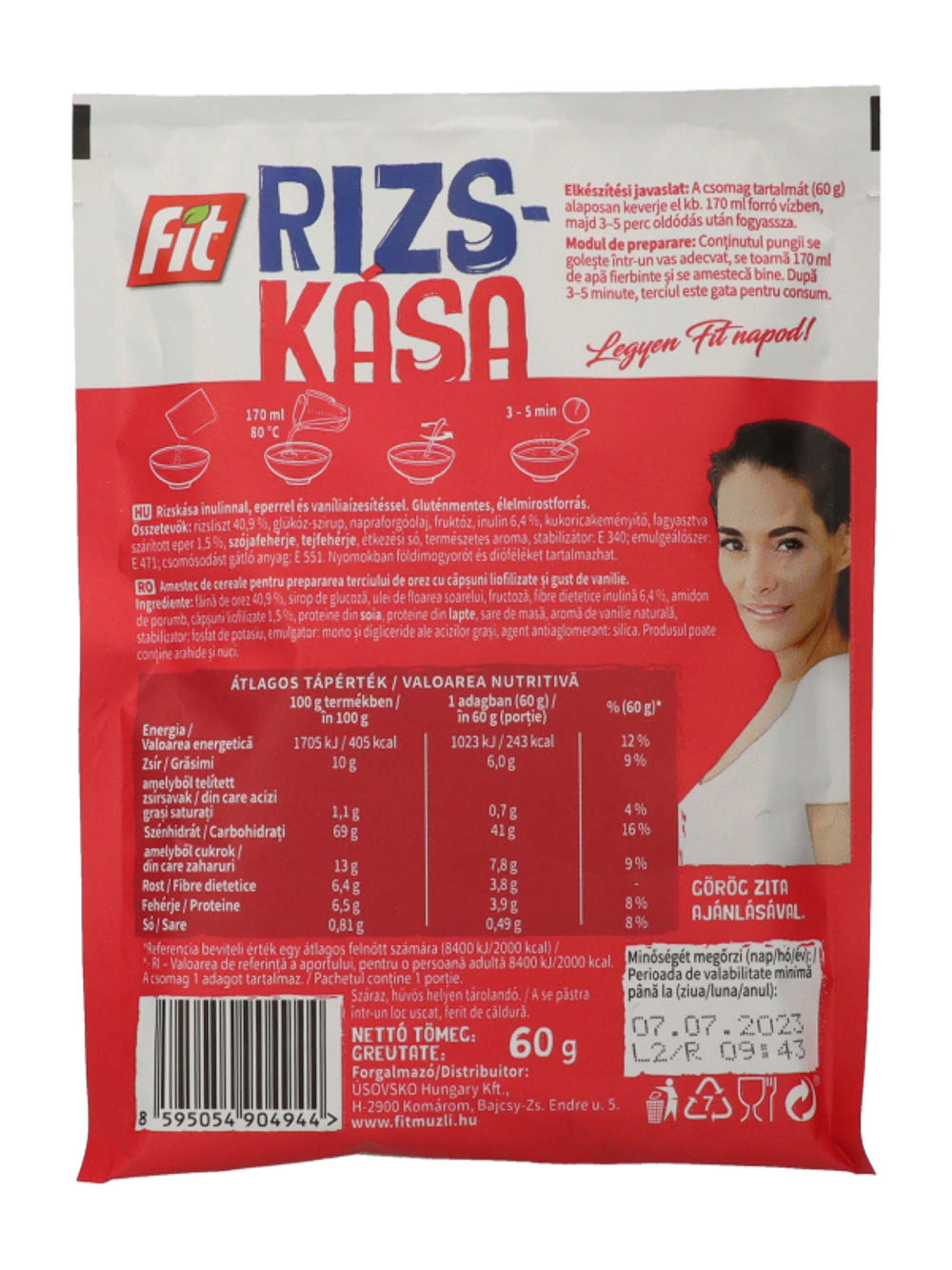 Fit Reggeli rizskása inulinnal, szárított eperdarabokkal és vaníliaízesítéssel - 60 g