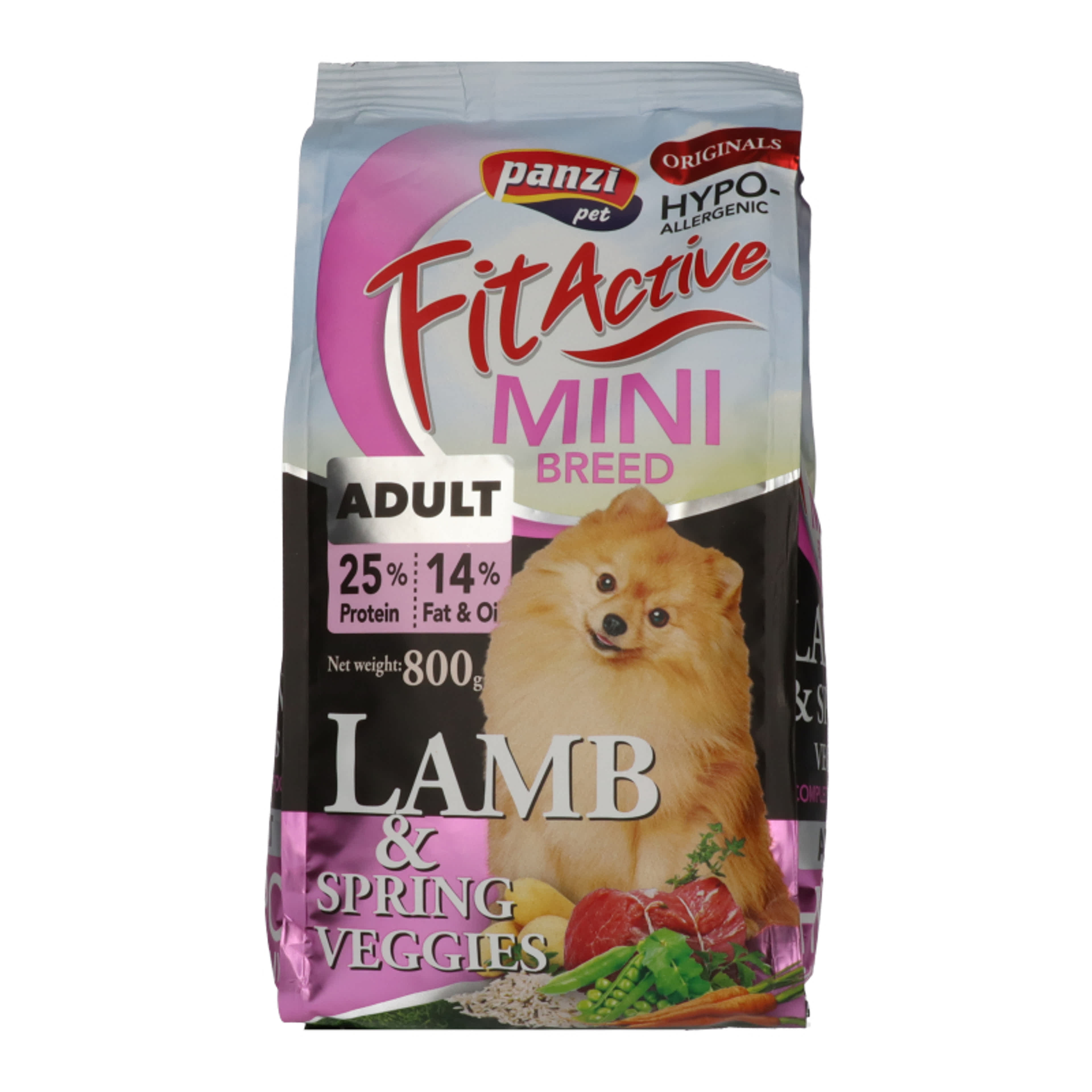 Fitactive Originals MINI Hypoallergenic Adult egy kistestű kutyáknak tervezett, csirke- és szárnyasmentes eledel felnőtt kutyáknak. Ideális választás olyan kedvenceink számára aki szárnyas allergiában vagy -intoleranciában szenvednek. A bárányhús mellett az eledel minimum 5% lazacot is tartalmaz, így biztosítva kedvenced számára az Omega-3 és Omega-6 telitetlen zsírsavak forrását – amível hozzájárul kutyusod egészséges szőrzetéhez és támogatja immunrendszerét is. Az ízletes húsok mellett az eledel szárított sárgarépát, borsót és burgonyát is tartalmaz, ezzel biztosítva a változatos, kiegyensúlyozott étrendet.