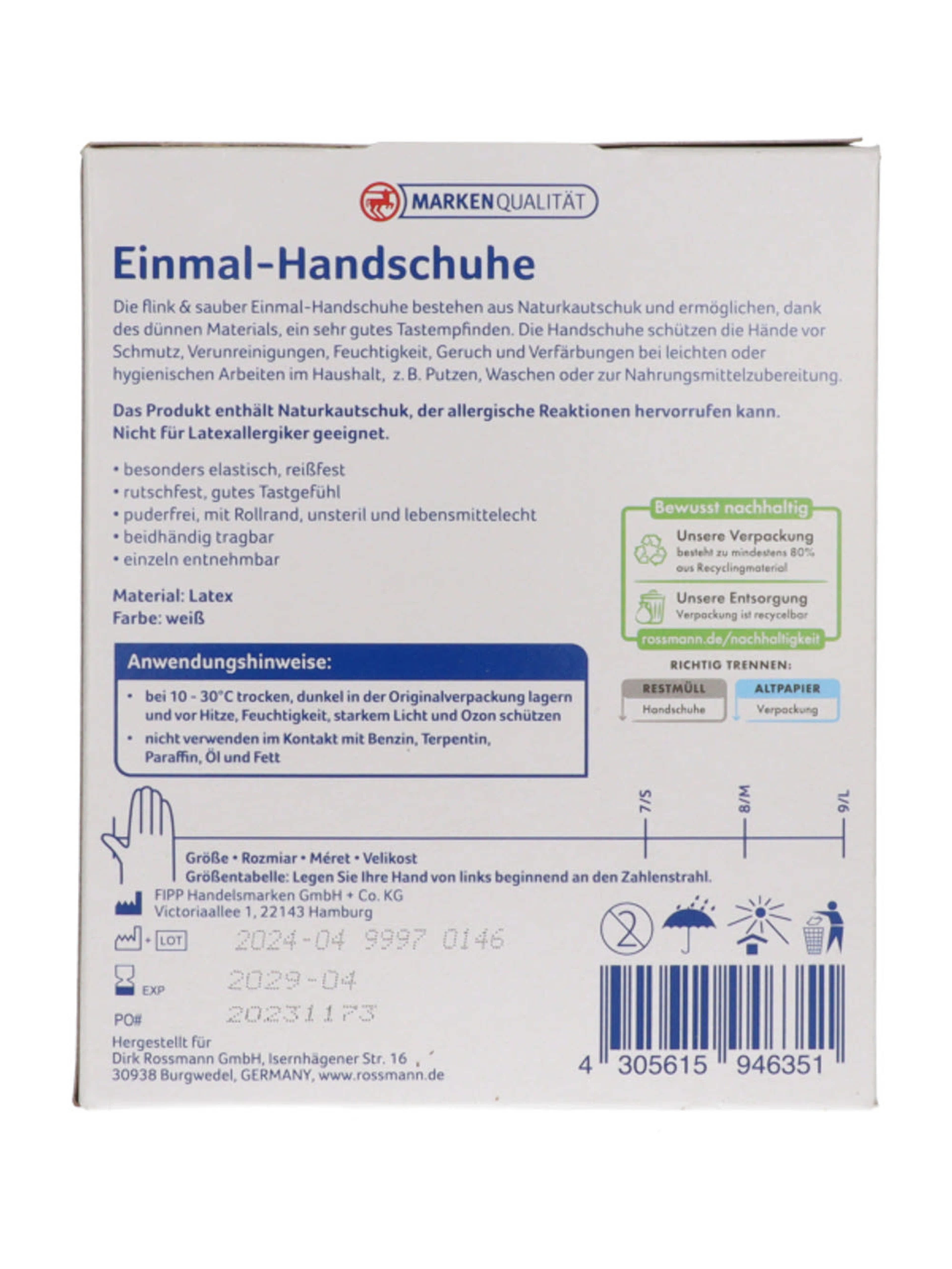 Flink & Sauber egyszer használatos latex gumikesztyű M-es méret - 60 db