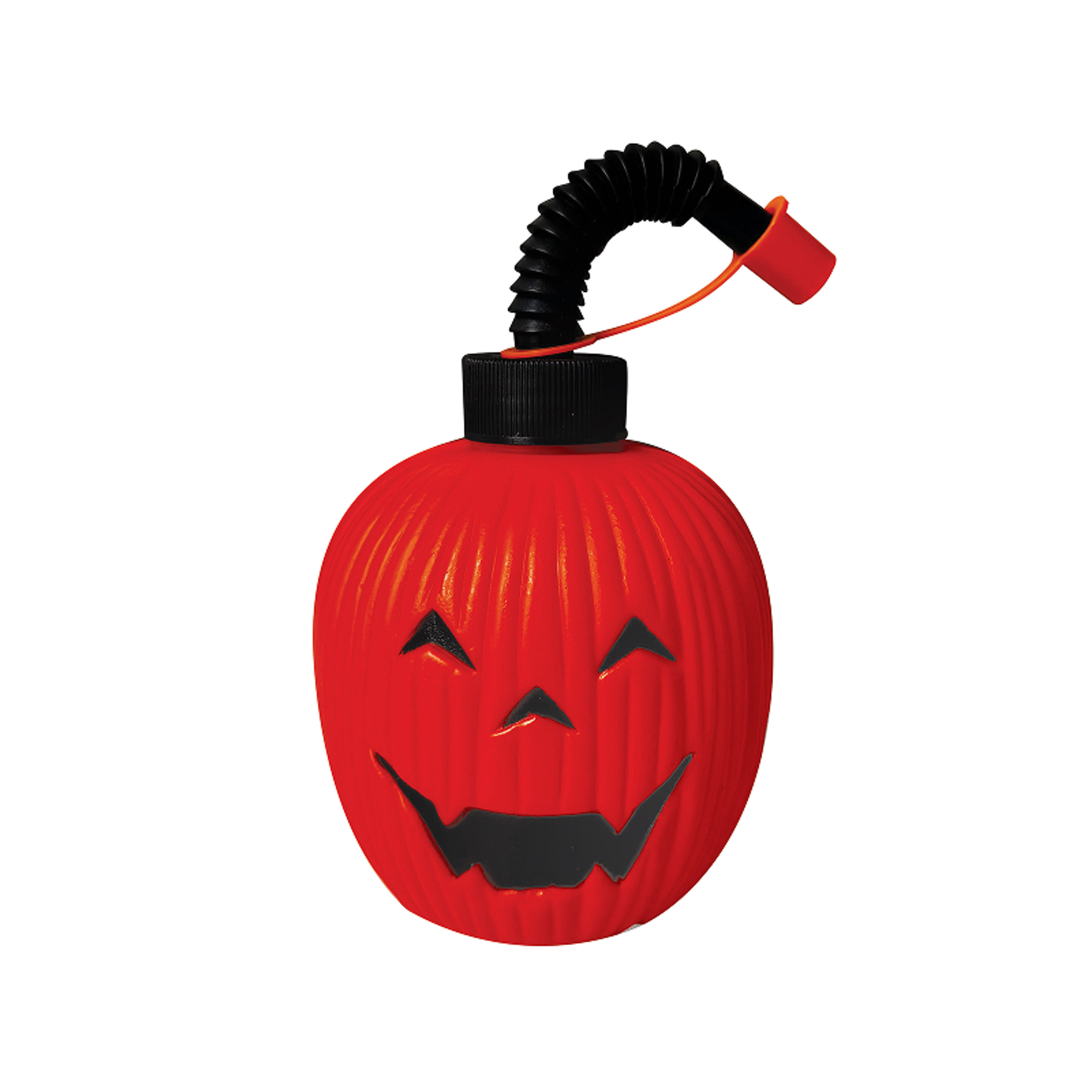 Pohár tetővel és szívószállal Anyag: műanyag Átmérő: 8,5 cm Magasság: 10 cm Szívószál hossza: 17 cm Vidám halloweeni tök alakú műanyag pohár szívószállal, amelynek szívószála harmonikaszerű díszítést és védőkupakot kapott. Tökéletes választás Halloween-partikhoz italok szervírozására, de dekorációként is remekül mutat bármely halloweeni asztalon!