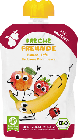 Freche Freunde Bio gyümölcspüré banán, alma, eper, málna - 100 g
