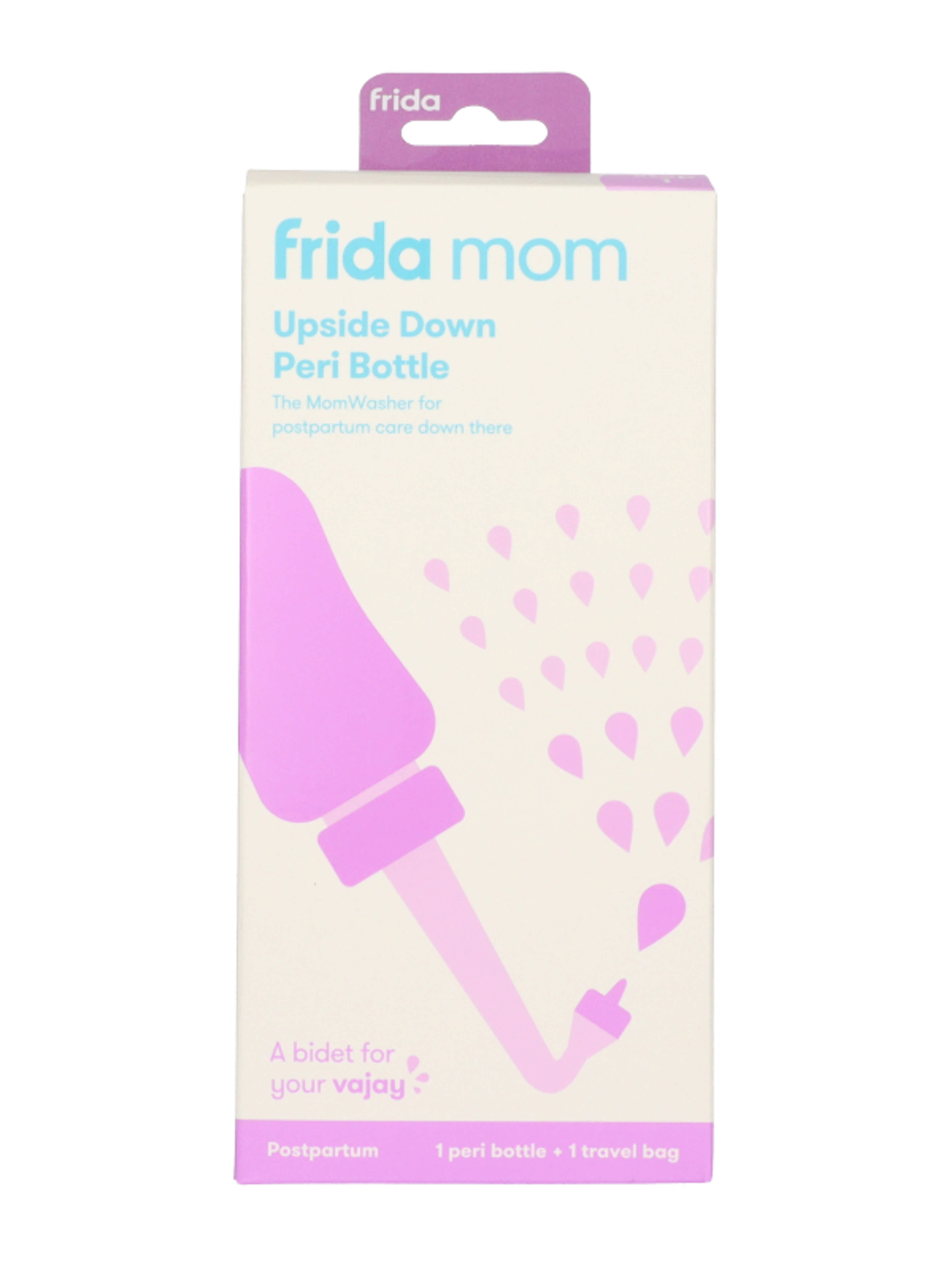 A hüvelyi szülés után az érzékeny intim területek és a gátseb különleges gondoskodást igényelnek. A FridaMom intim zuhany ideális társ, gyengéden tisztítja meg pontosan azokat a területeket, amelyeknek a szülés után a legnagyobb szükségük van rá. A maximális higiénia kulcsfontosságú a szülés utáni sebek komplikációmentes gyógyulásához, így nélkülözhetetlen az intim területek gyakori, tiszta vízzel történő öblítése. A FridaMom intim zuhany ezért az első lépés annak érdekében, hogy szülés után a sérült intim területek minél előbb regenerálódhassanak.Egy palack, amely fejjel lefelé működik! A FridaMom intim zuhany palackot úgy tervezték, hogy alulról felfelé haladva lehessen használni. Azaz, akár akkor is, amikor a WC-n ül! Nem kell aggódnia a nehézkes használat, vagy a szétfolyó víz miatt. Az ívelt nyaknak köszönhetően a víz pontosan oda jut, ahová kell.