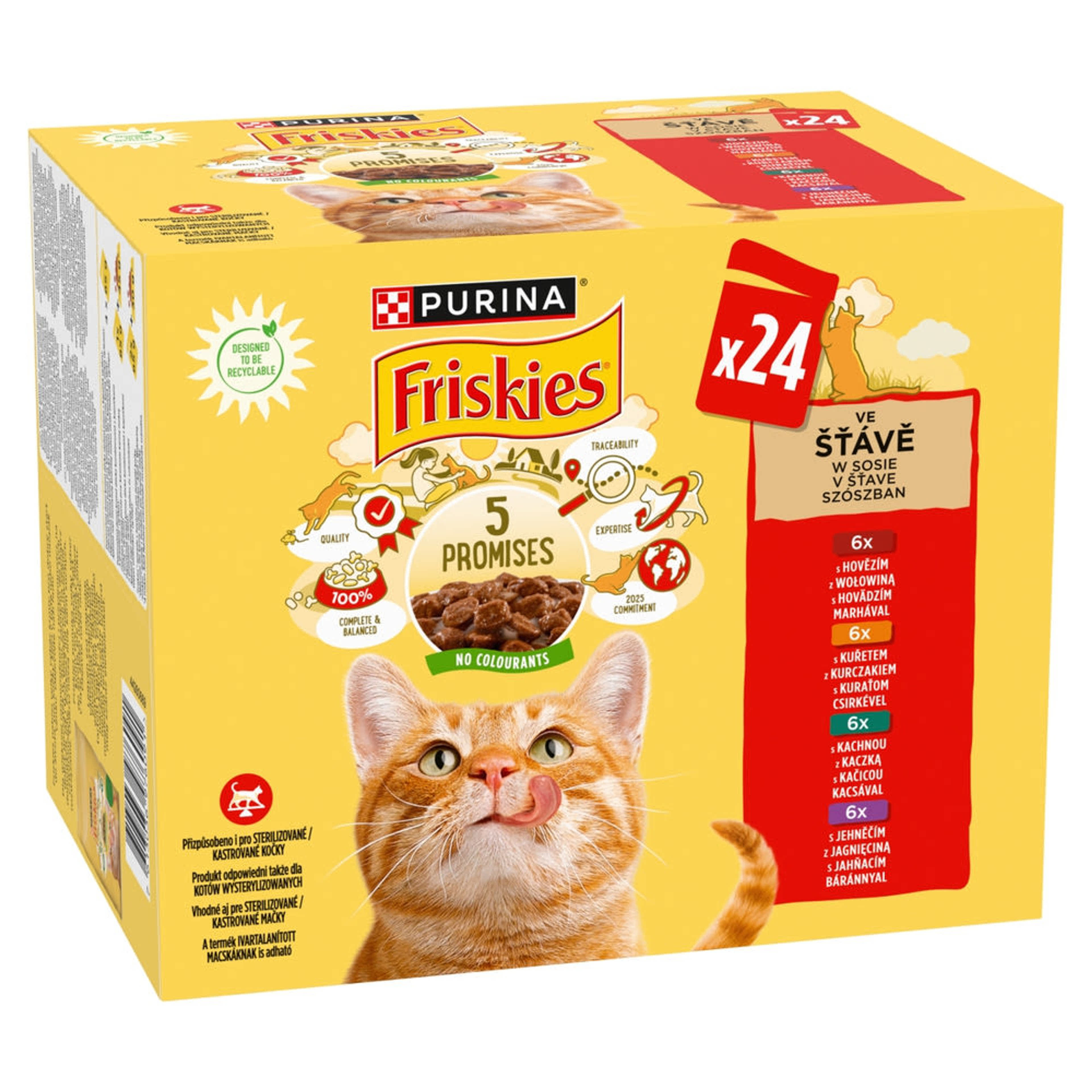 A Friskies 5 ígérete. Attól a naptól kezdve, hogy macskádat hazaviszed, el is kötelezed magad: gondoskodsz róla és megfelelően táplálod. A Friskies-nél ugyanezt ígértük meg. A Friskies több évtizedes tapasztalattal és szakértelemmel látja el a macskákat generációk óta ízletes és minőségi eledellel minden nap. Erre nemcsak büszkék vagyunk, hanem hatalmas felelősségként is tekintünk.