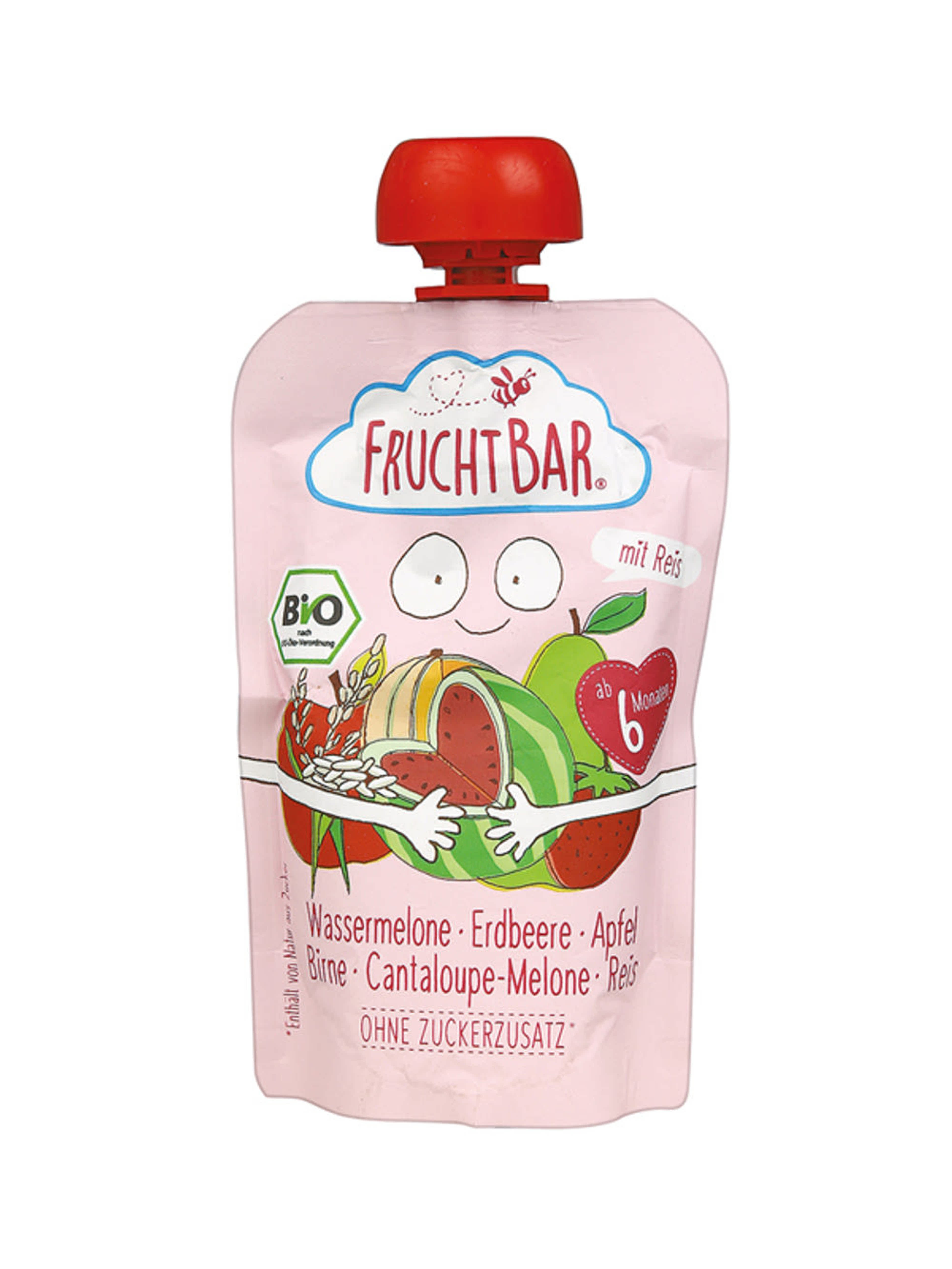 Fruchtbar Bio gyümölcspüré görögdinnye - eper - alma - körte - sárgadinnye - rizs 6 hónapos kortól - 100 g